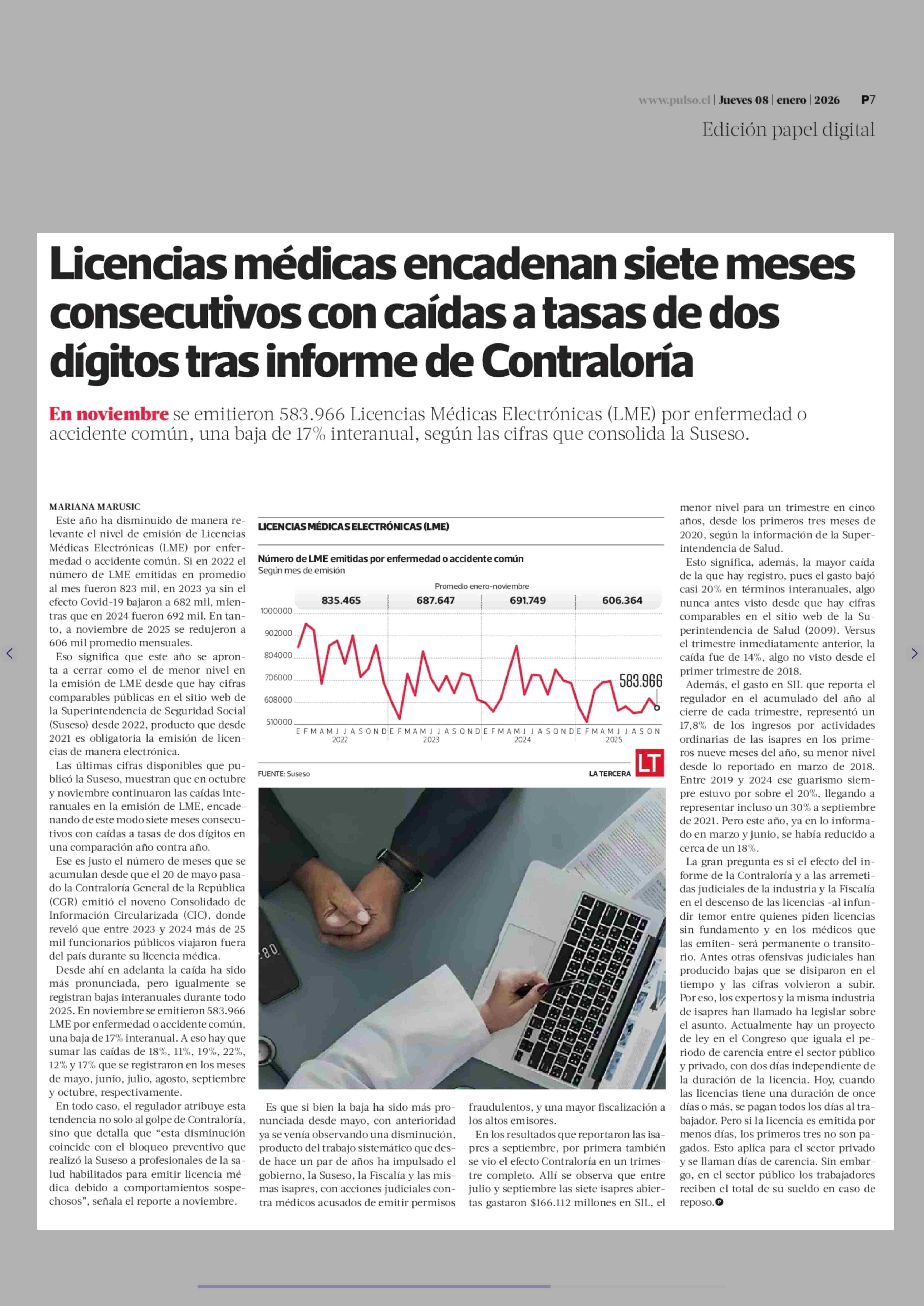 Título: Licencias médicas encadenan siete meses consecutivos con caídas a tasas de dos dígitos tras informe de Contraloría