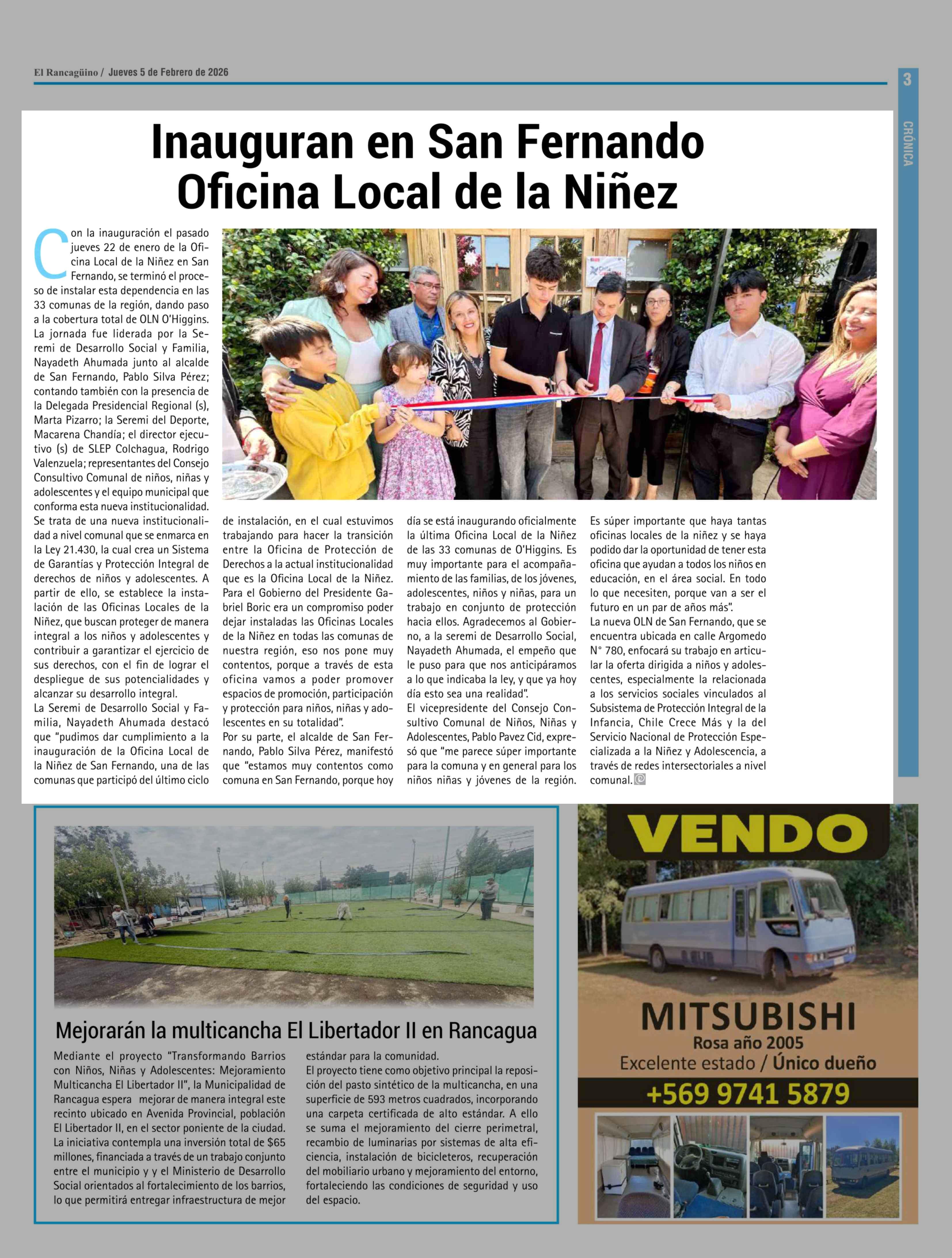 Inauguran en San Fernando Oficina Local de la Niñez 05-02-2026 El Rancagüino |