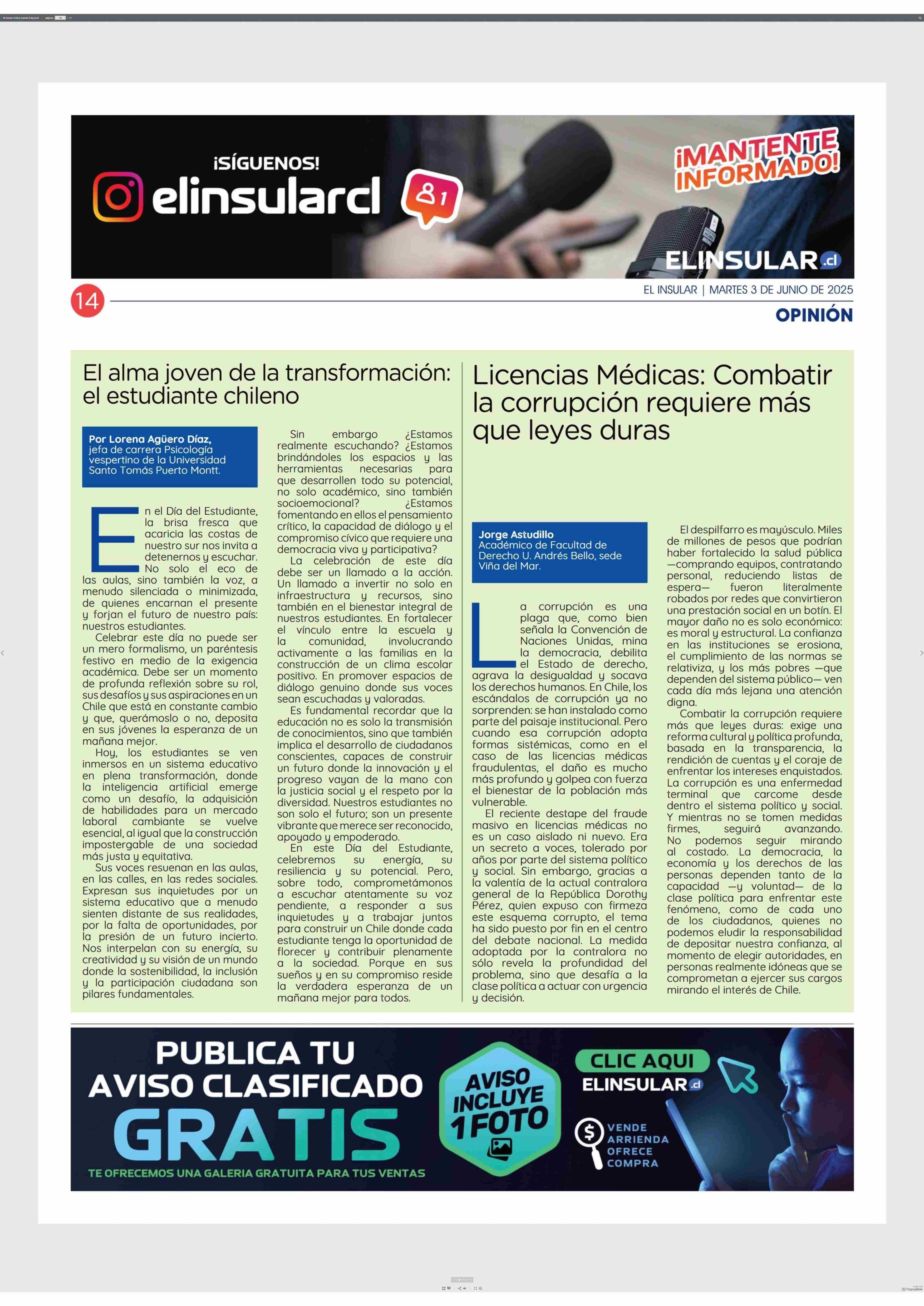 Fecha: 03-06-2025 Sector: Columnas de Opinión Región: Región de Los Lagos