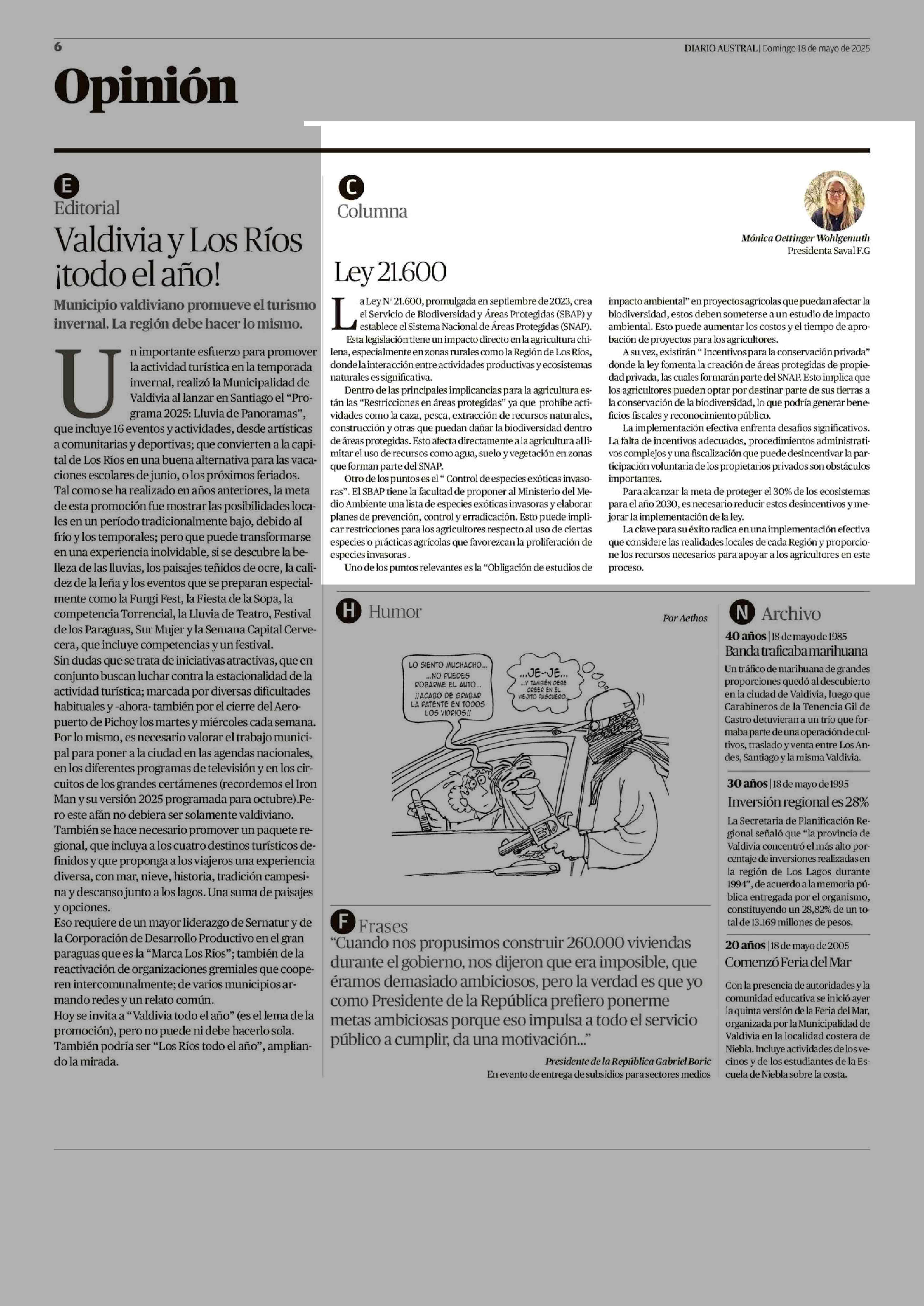COLUMNAS DE OPINIÓN: Lev 21600 18-05-2025 Diario Austral Región de Los Ríos |
