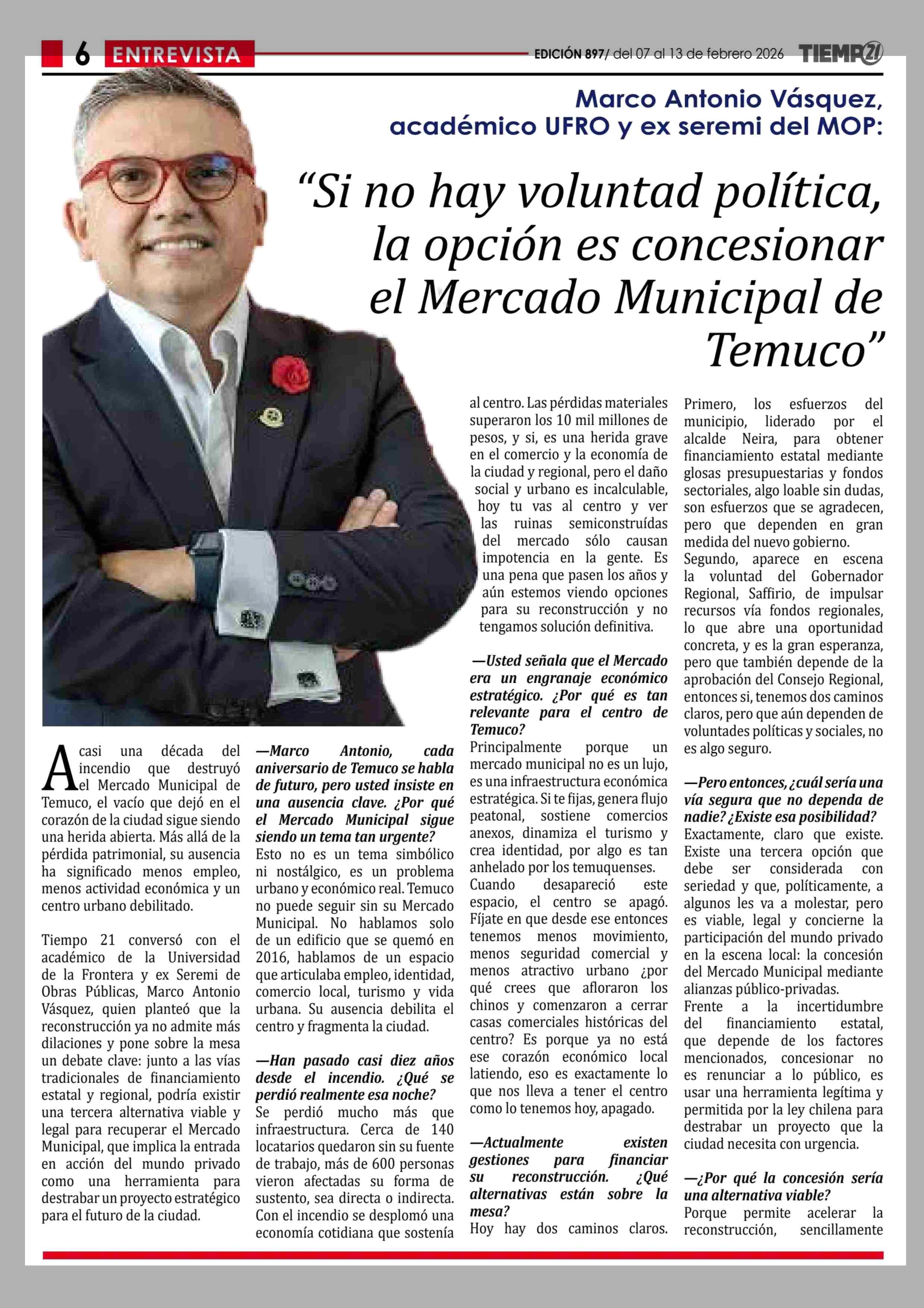 Título: "Si no hay voluntad política, la opción es concesionar el Mercado Municipal de Temuco"