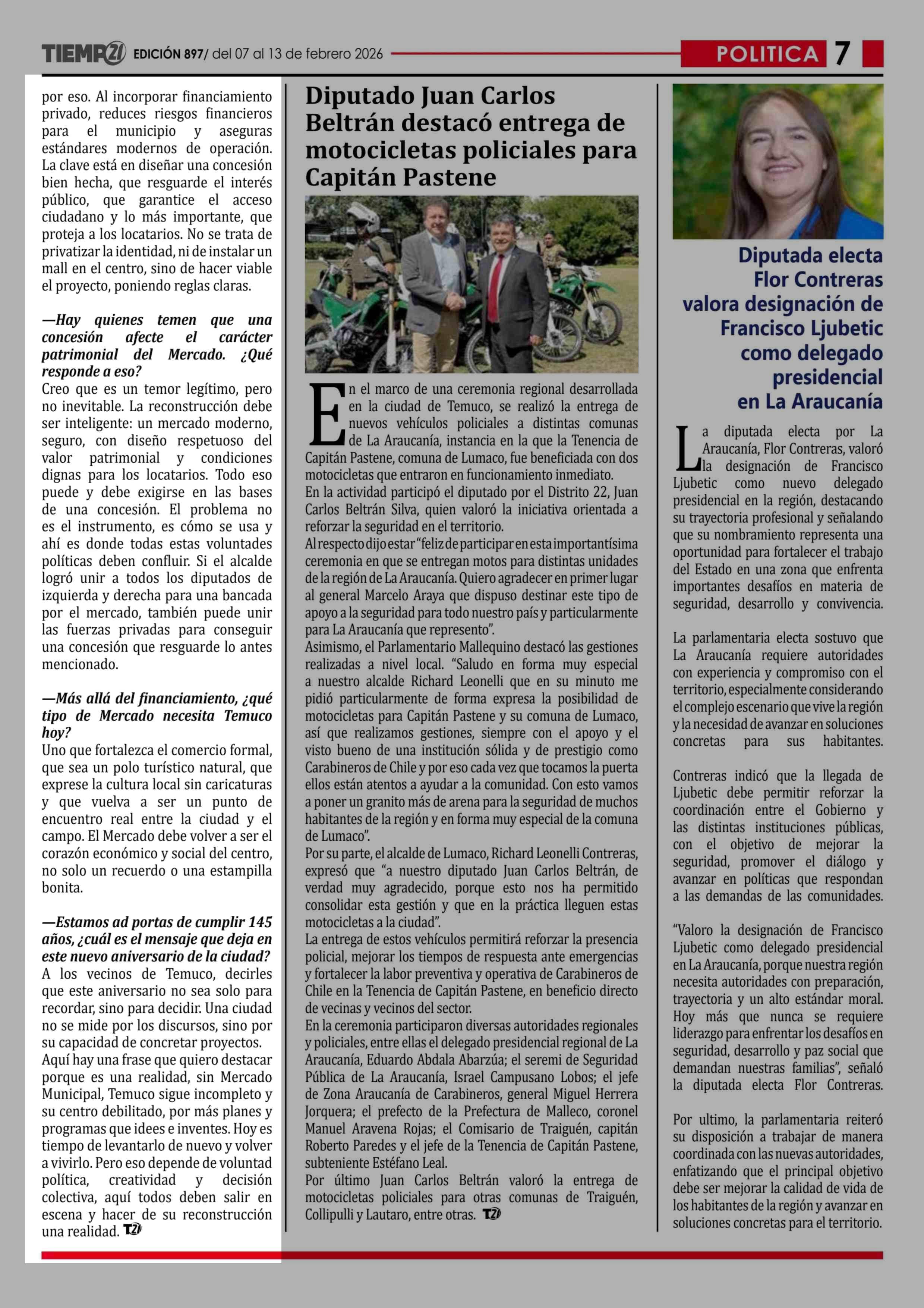 Fecha: 07-02-2026 Sector: Noticia general Región: Región de la Araucanía