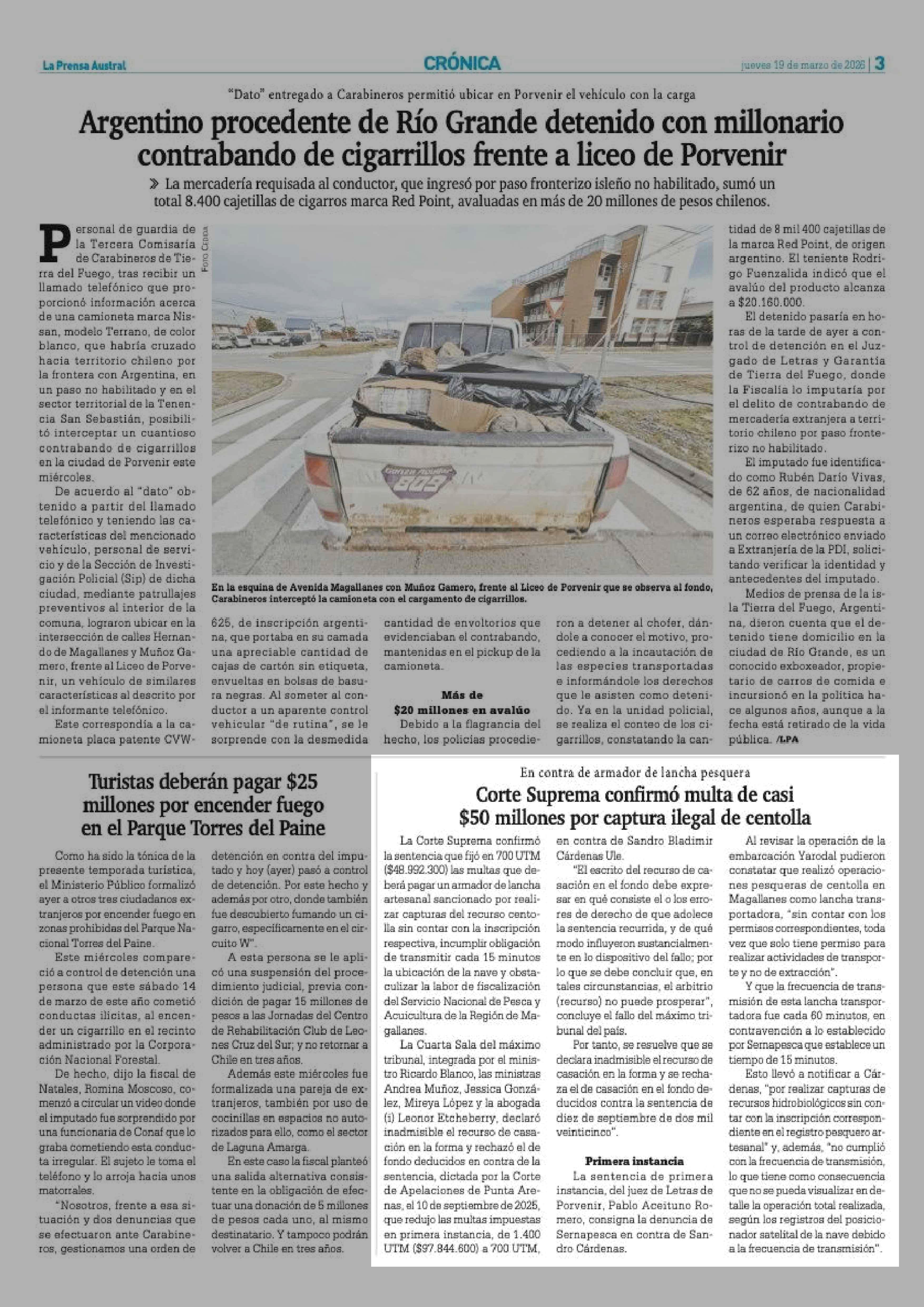 | Fecha: | 19-03-2026 | Sector: | Noticia general | Región: | Región de Magallanes y de la Antártica Chilena |