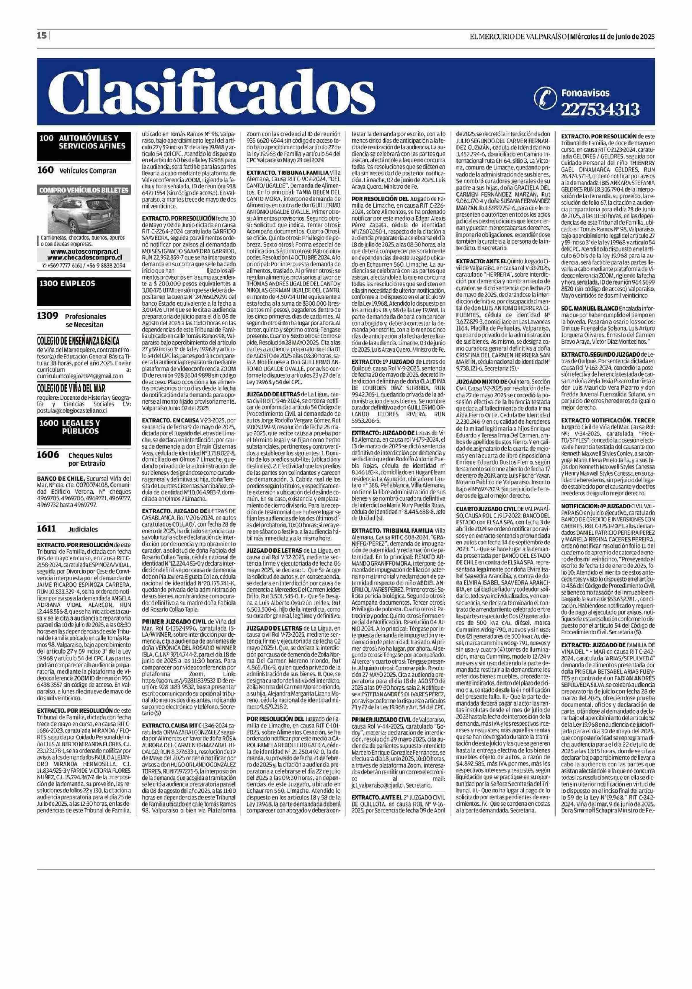 Extractos: clasificados 11-06-2025 El Mercurio de Valparaíso |