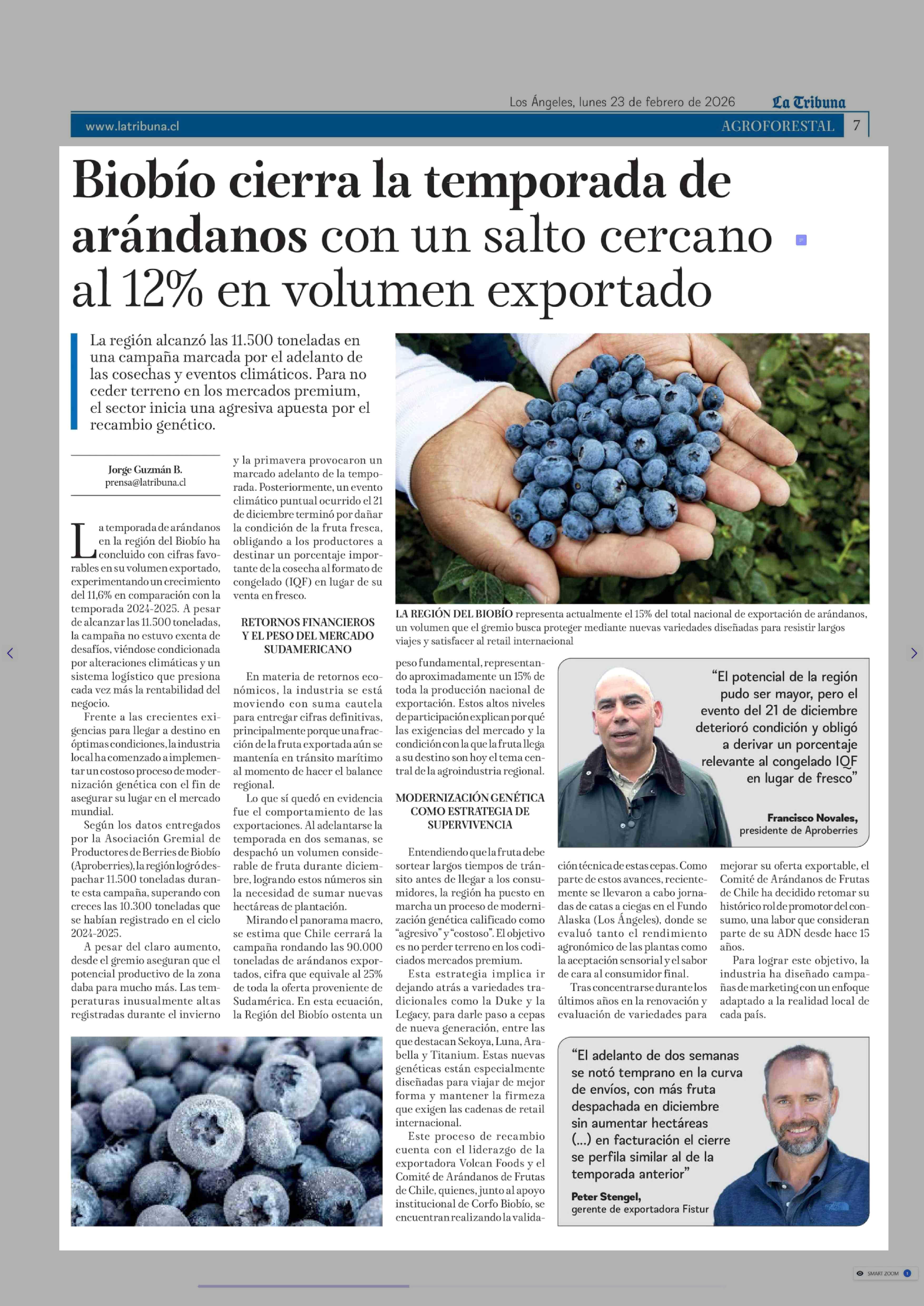Título: Biobío cierra la temporada de arándanos con un salto cercano al 12% en volumen exportado