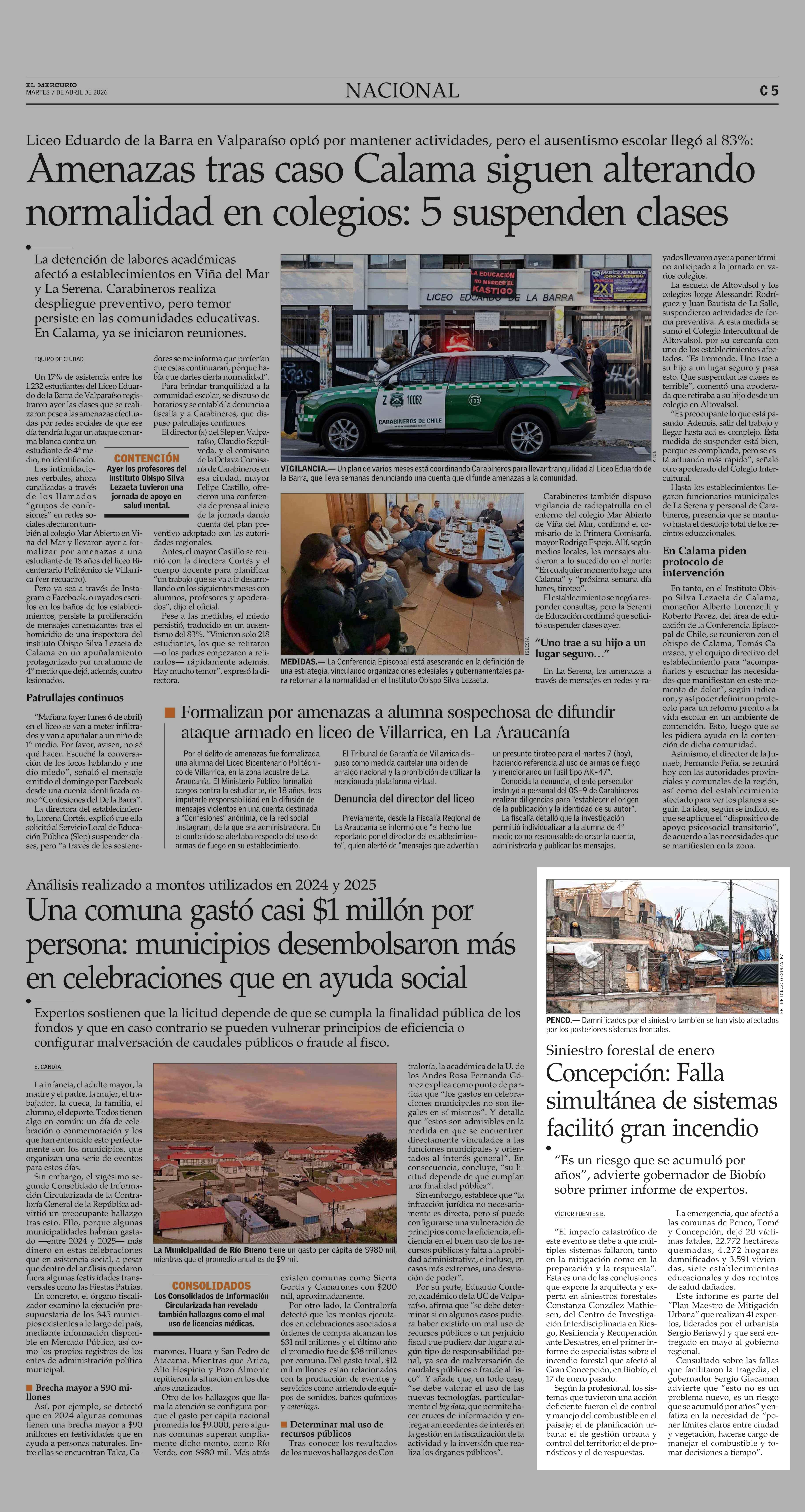 Concepción: Falla simultánea de sistemas facilitó gran incendio 07-04-2026 El Mercurio |