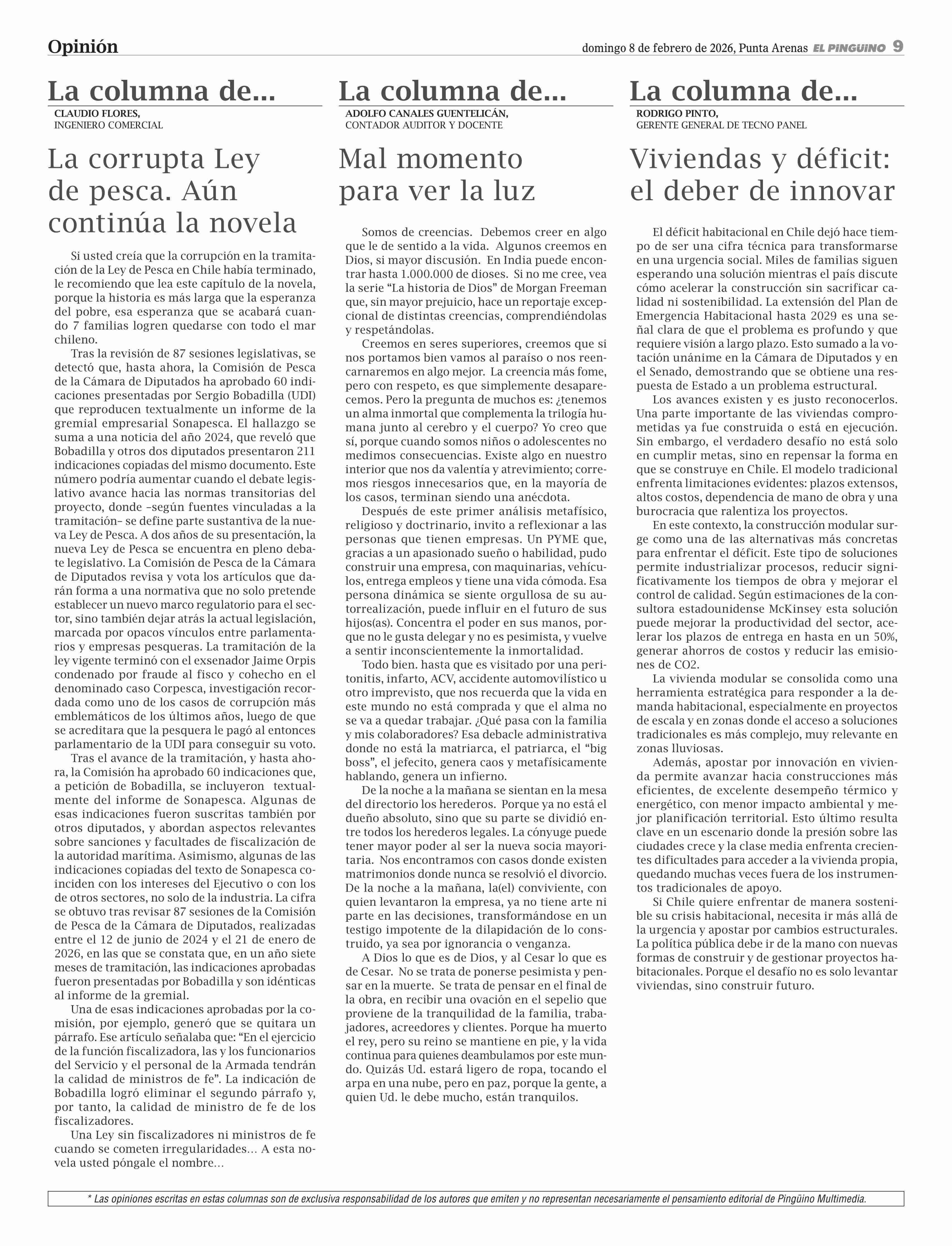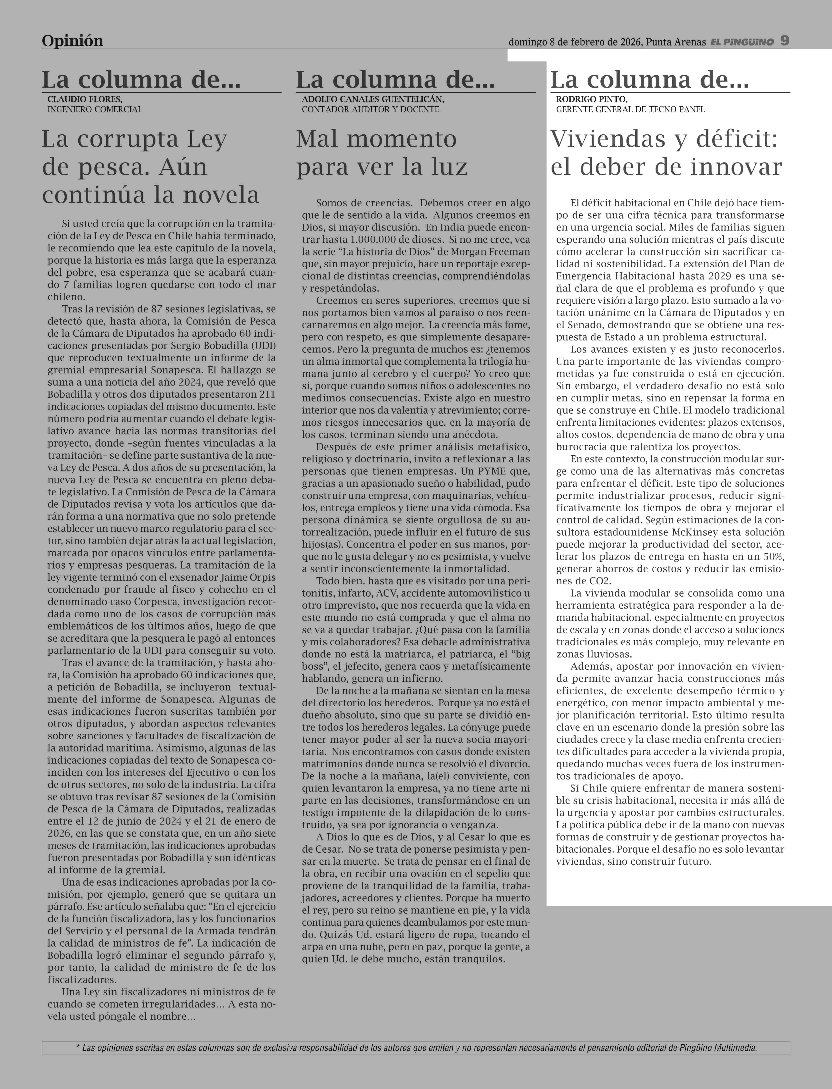 Fecha: 08-02-2026 Sector: Columnas de Opinión Región: Región de Magallanes y de la Antártica Chilena