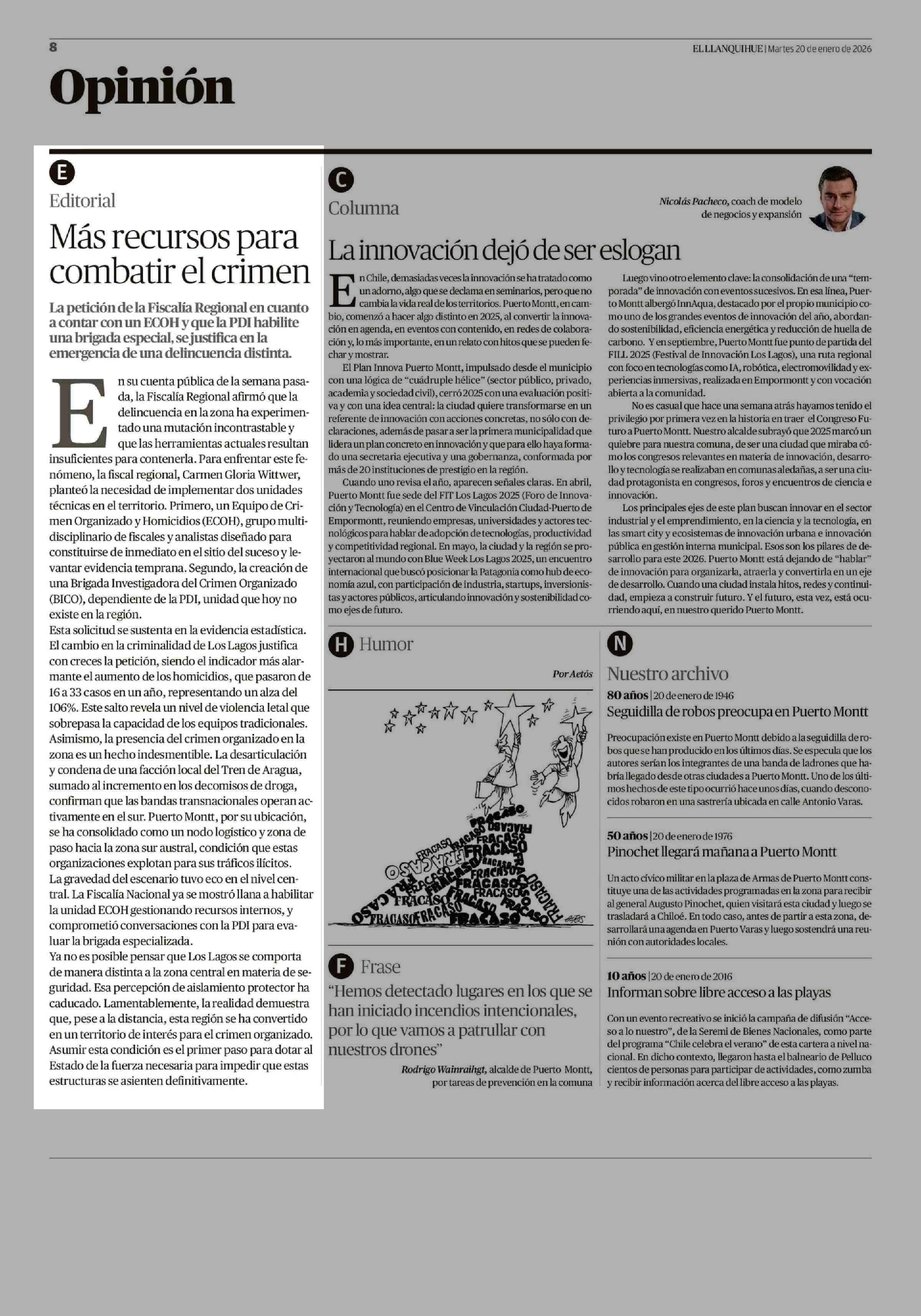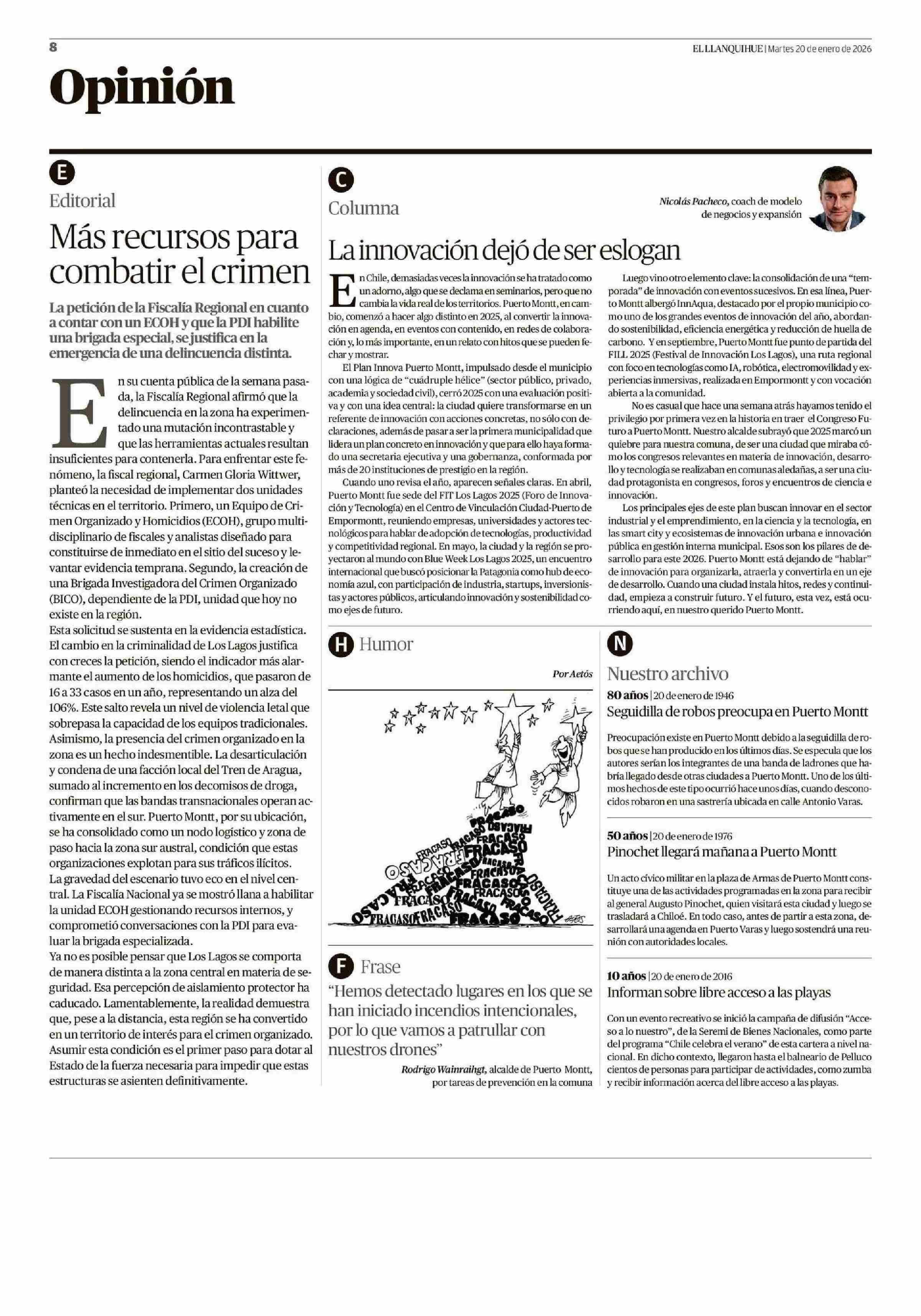 Editorial: Más recursos para combatir el crimen 20-01-2026 El Llanquihue |