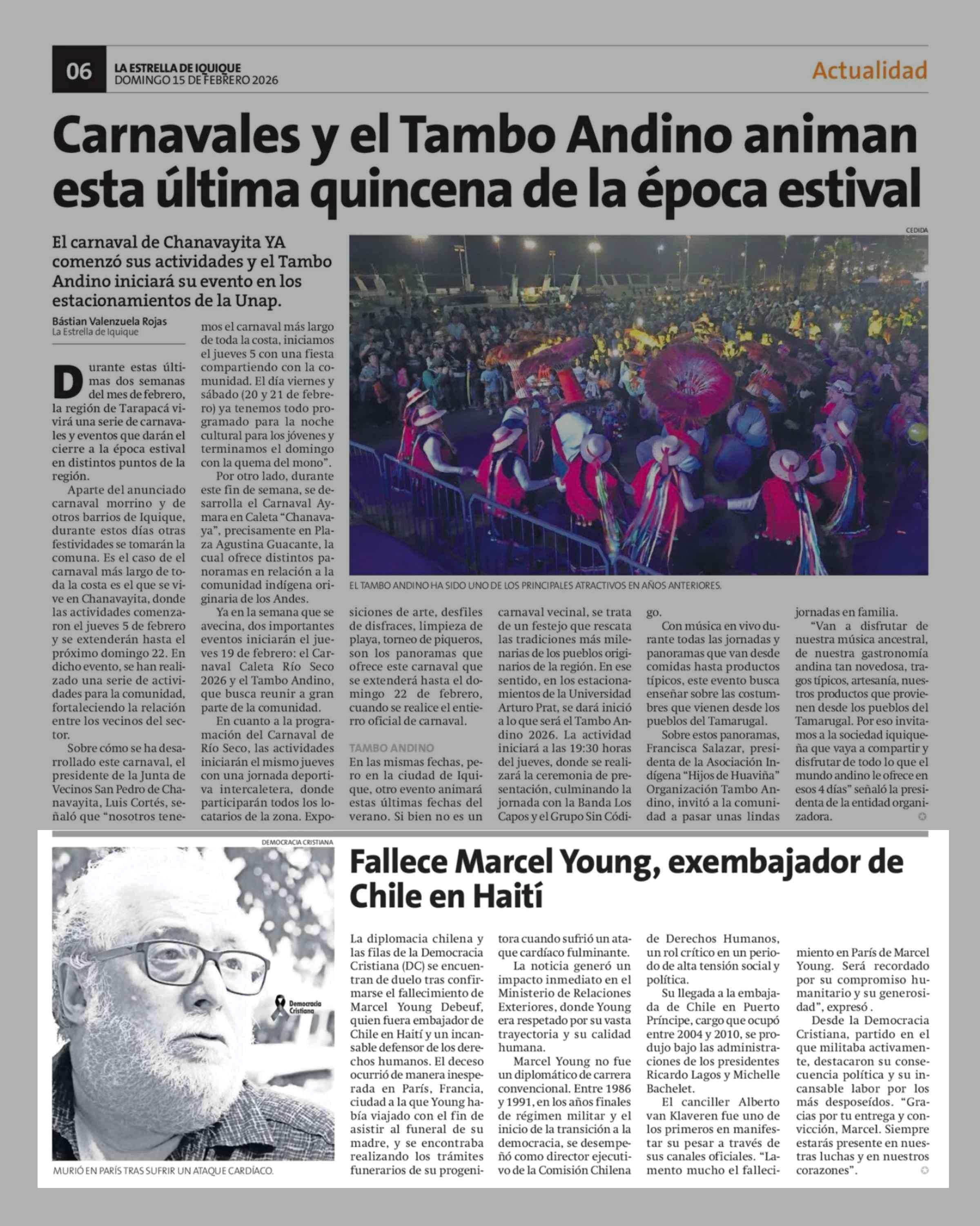 Fallece Marcel Young, exembajador de Chile en Haití 15-02-2026 La Estrella de Iquique |