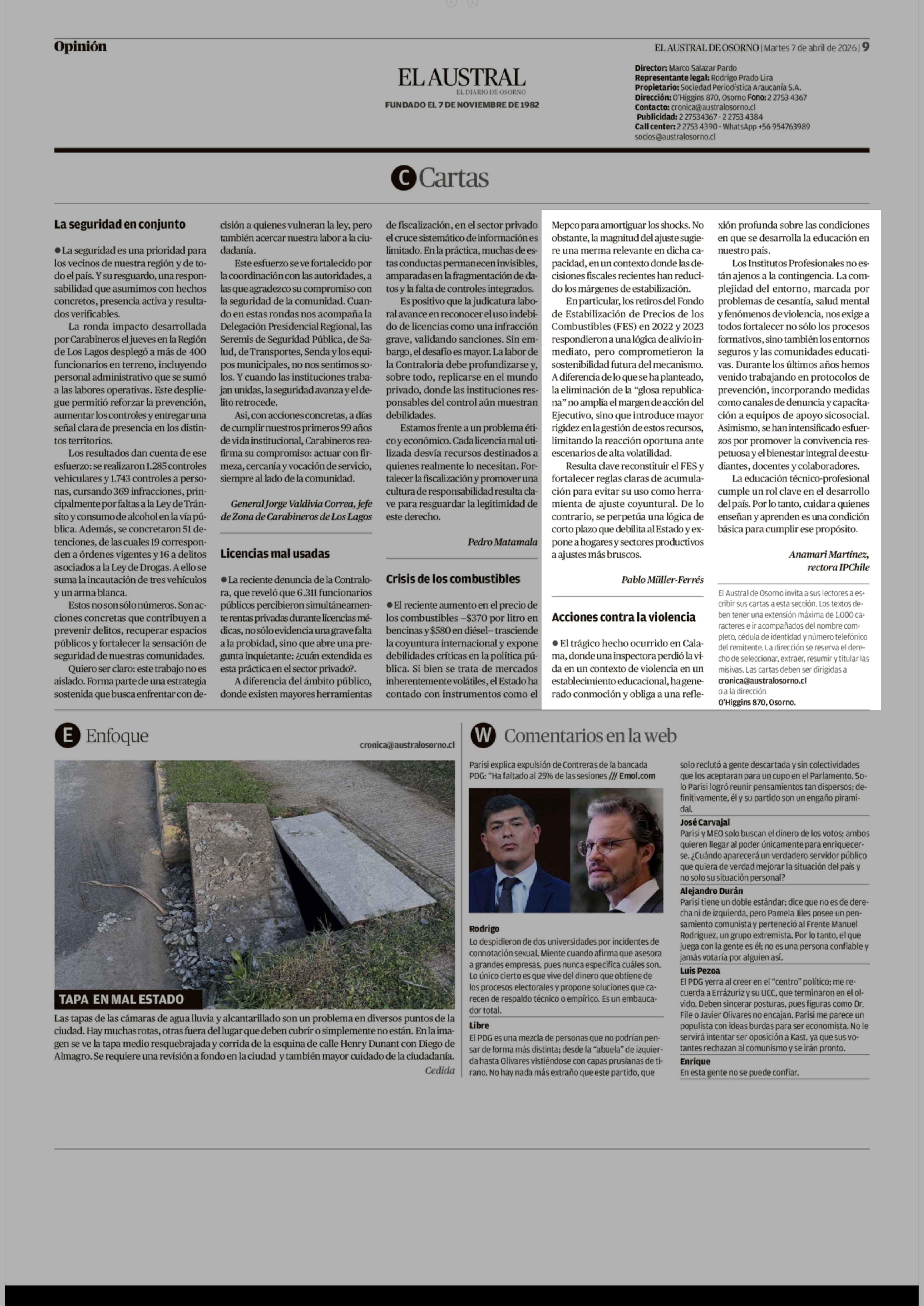 Fuente: El Austral de Osorno (El Austral de Osorno) Página(s): 9