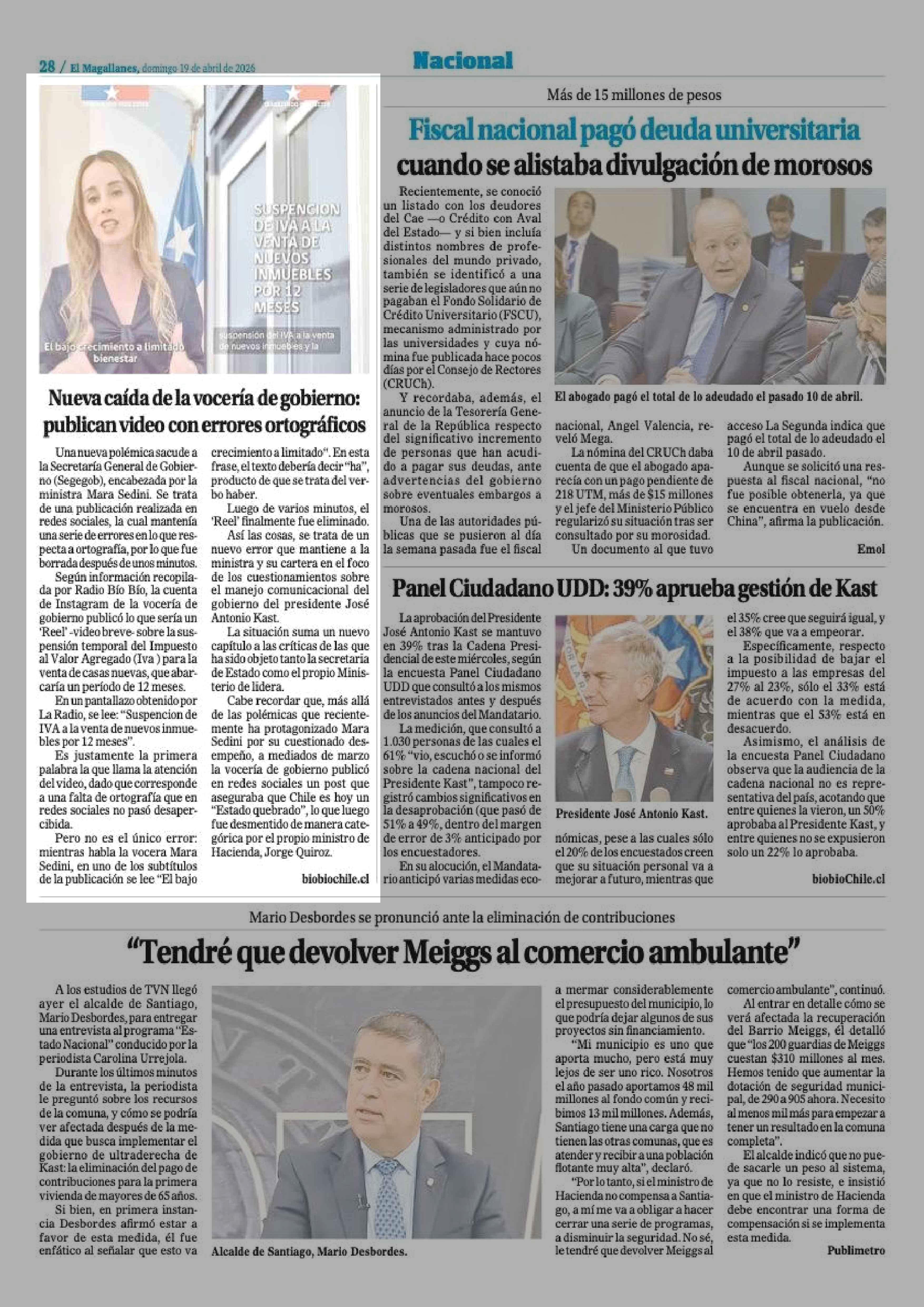 Nueva caída de la vocería de gobierno: publican video con errores ortográficos 19-04-2026 El Magallanes |