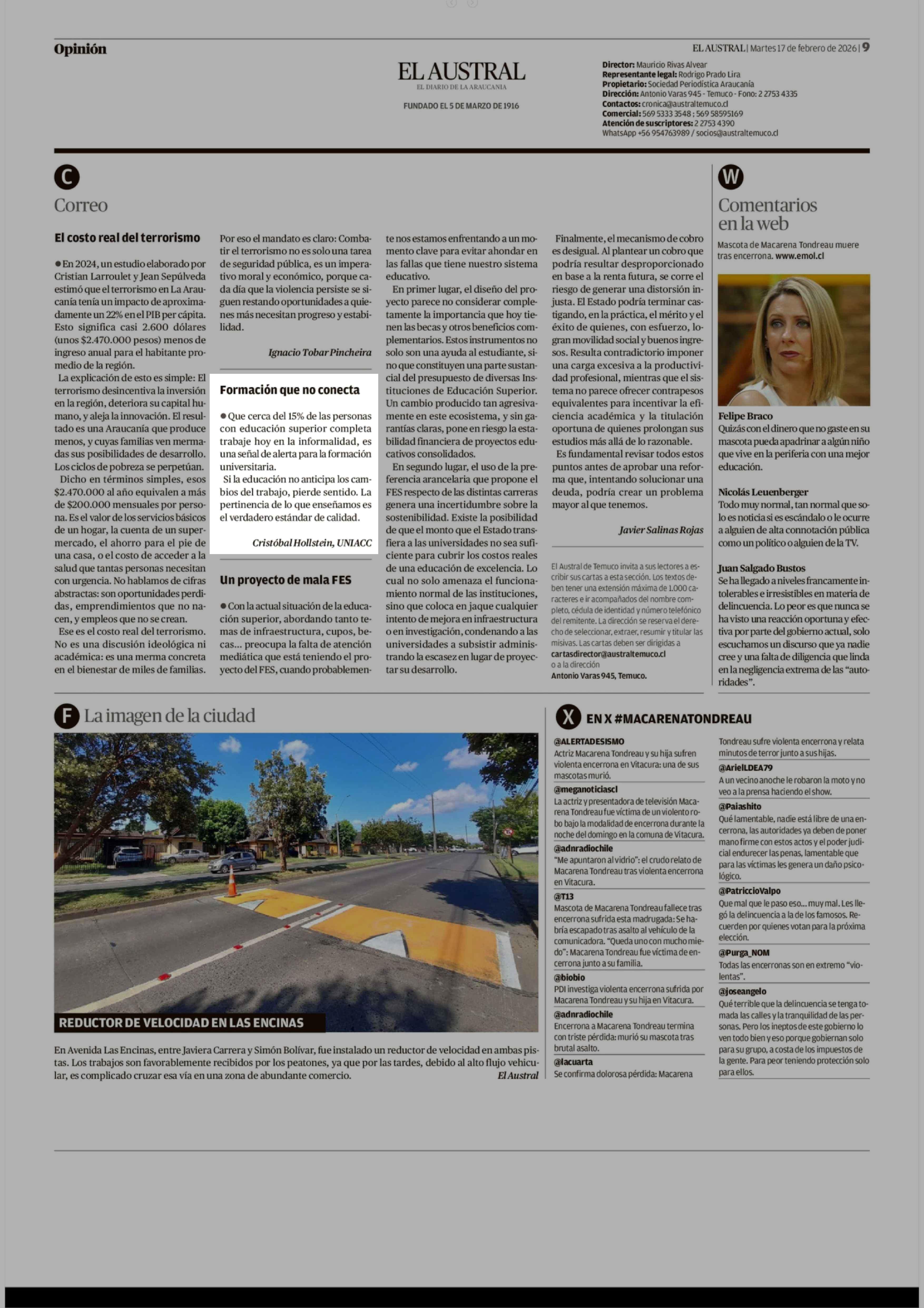 Fuente: El Austral de la Araucanía (El Austral de la Araucanía) Página(s): 9