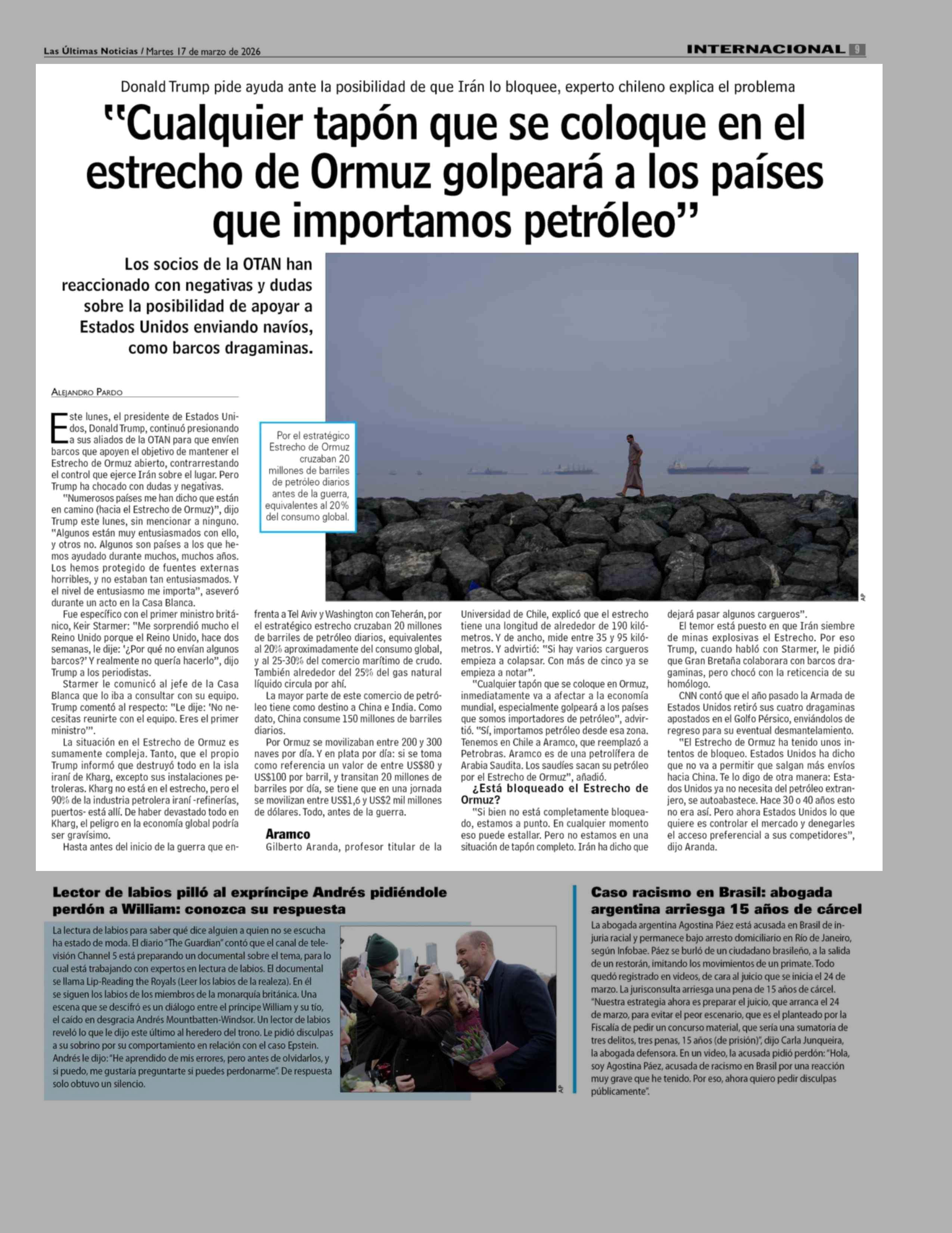 Título: "Cualquier tapón que se coloque en el estrecho de Ormuz golpeara a los países que importamos petróleo"