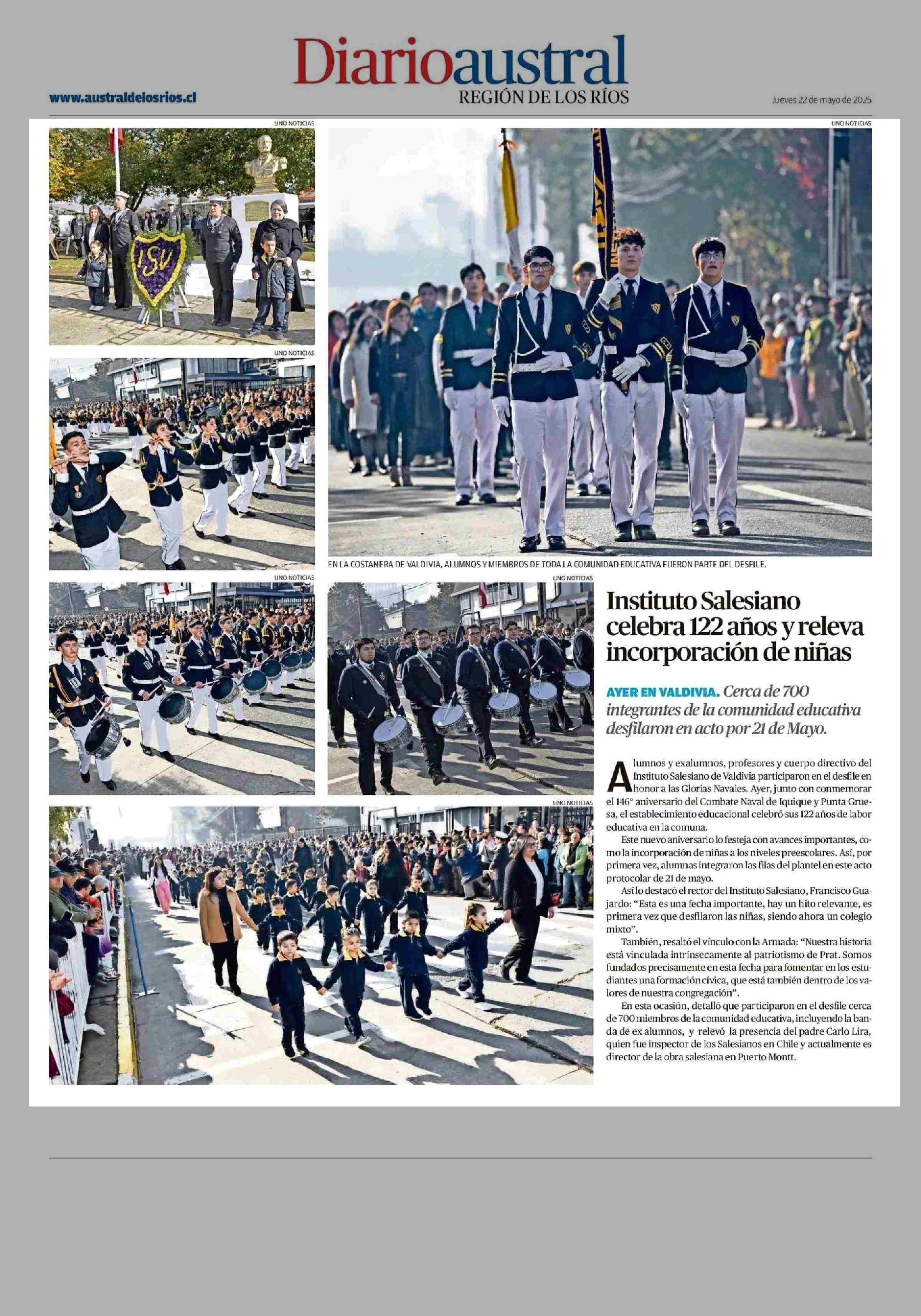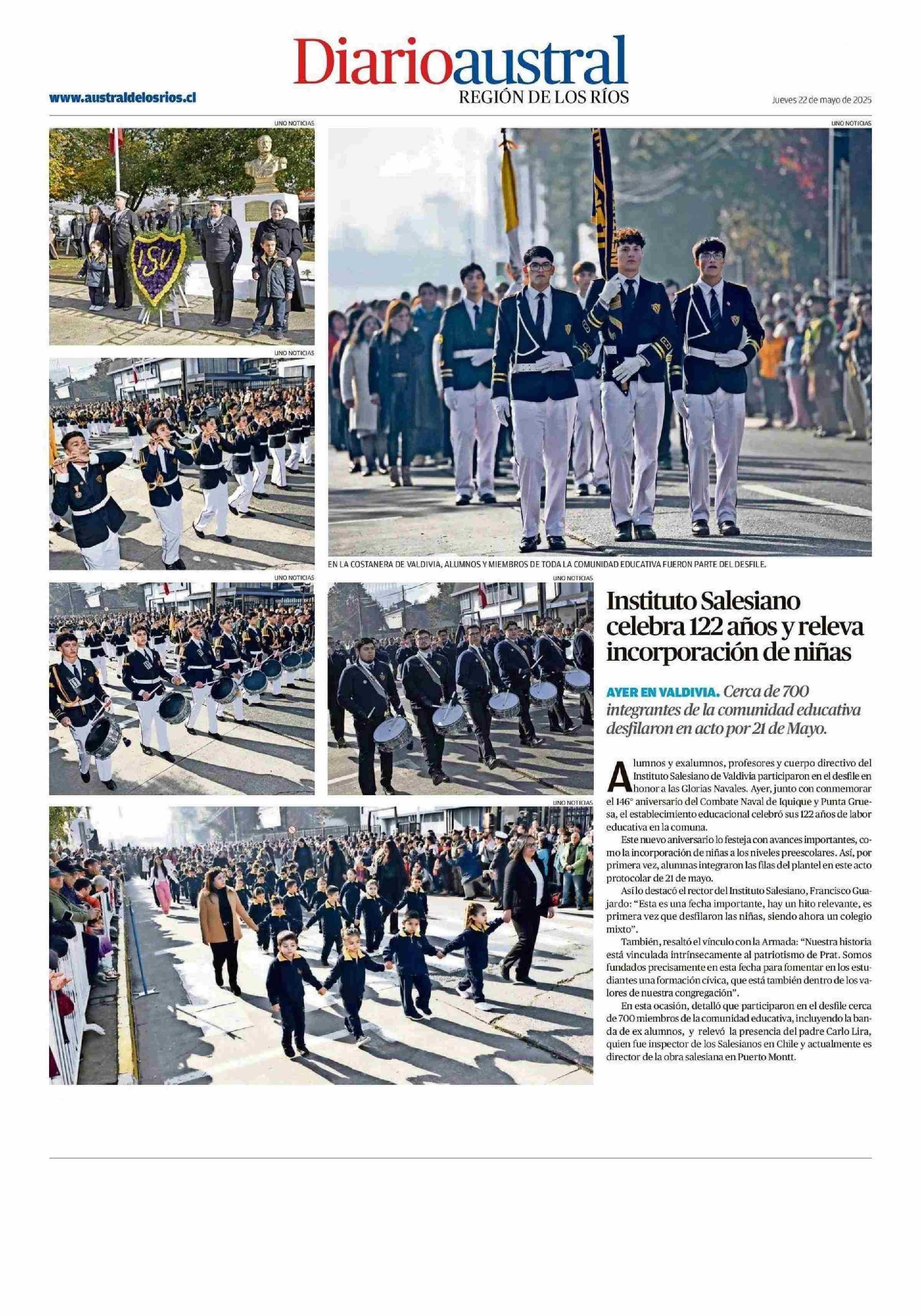 Instituto Salesiano celebra 122 años y releva incorporación de niñas 22-05-2025 Diario Austral Región de Los Ríos |