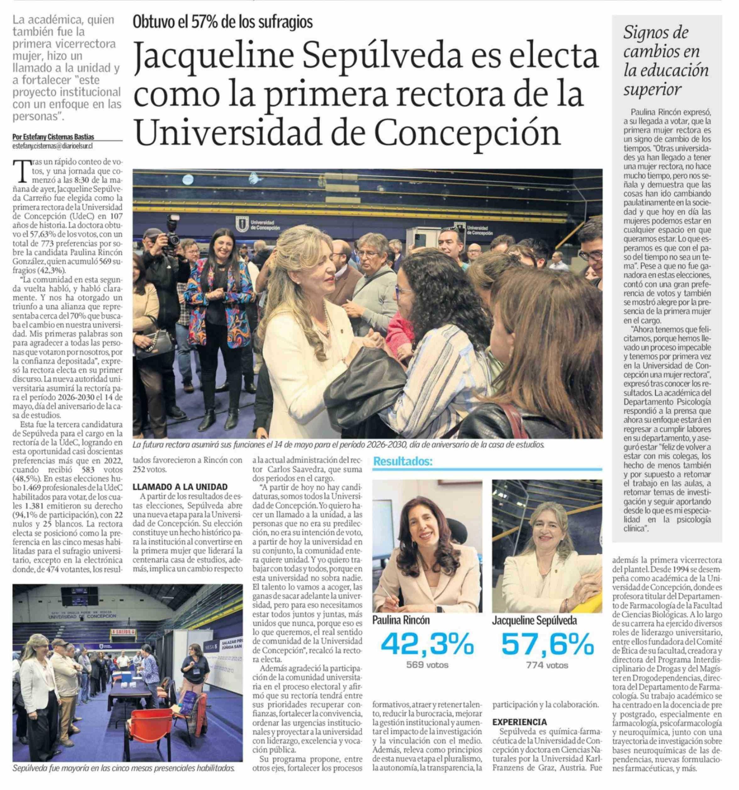 Título: Jacqueline Sepúlveda es electa como la primera rectora de la Universidad de Concepción