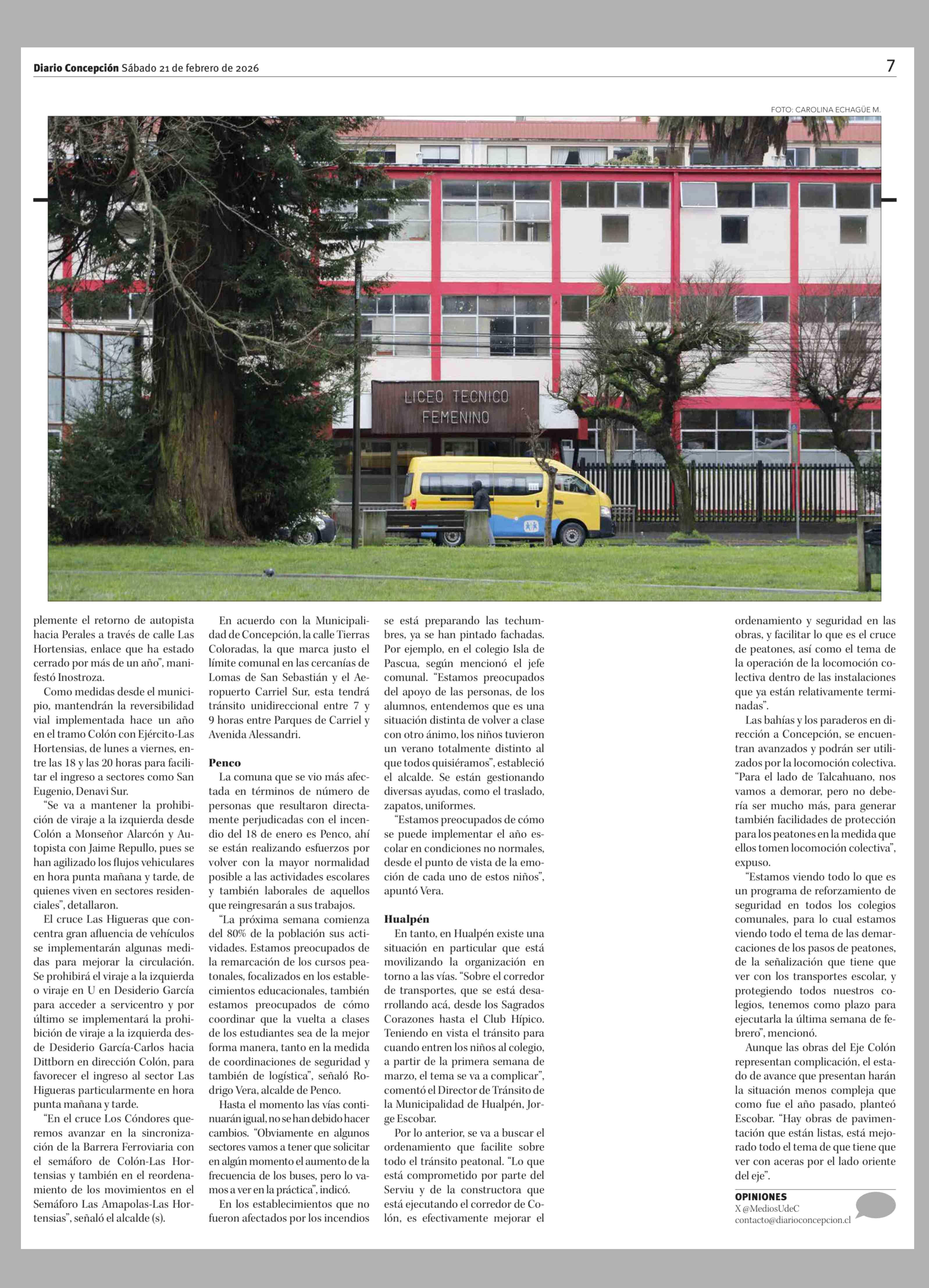 Con marzo a la vista: municipios implementan medidas para el tránsito ante obras viales en ejecución 21-02-2026 Diario Concepción |
