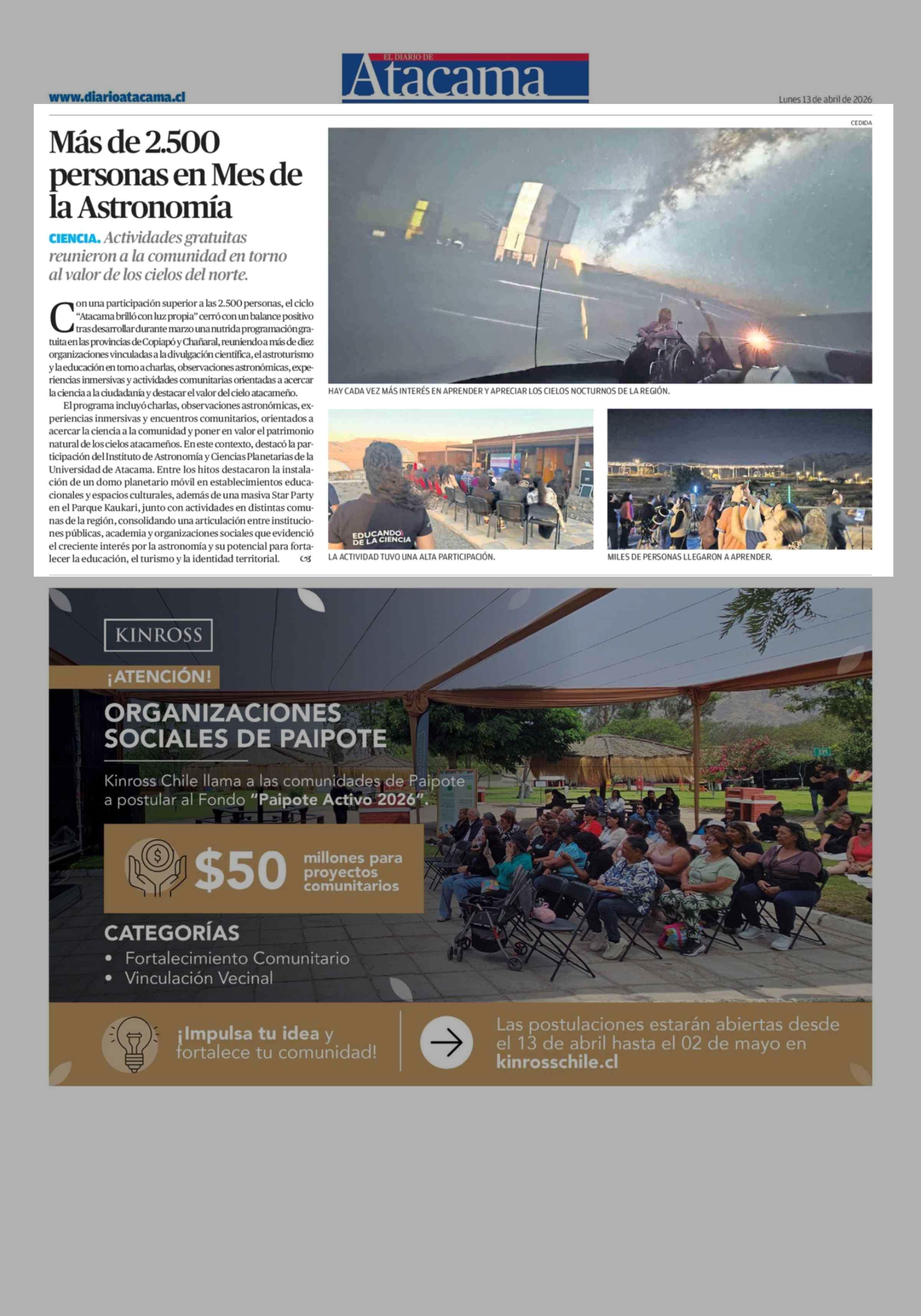 Más de 2.500 personas en Mes de la Astronomía 13-04-2026 El Diario de Atacama |