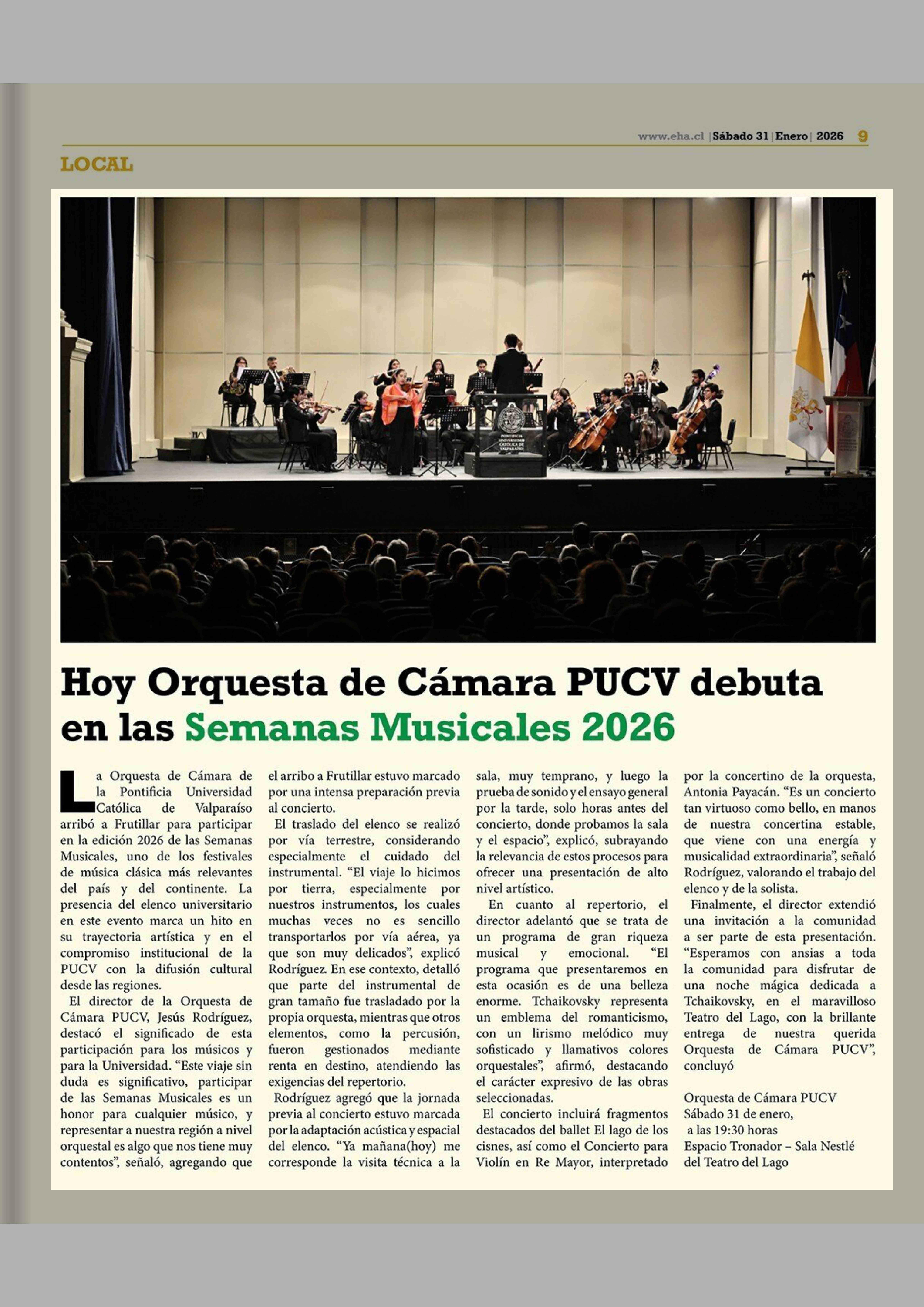 Título: Hoy Orquesta de Cámara PUCV debuta en las Semanas Musicales 2026