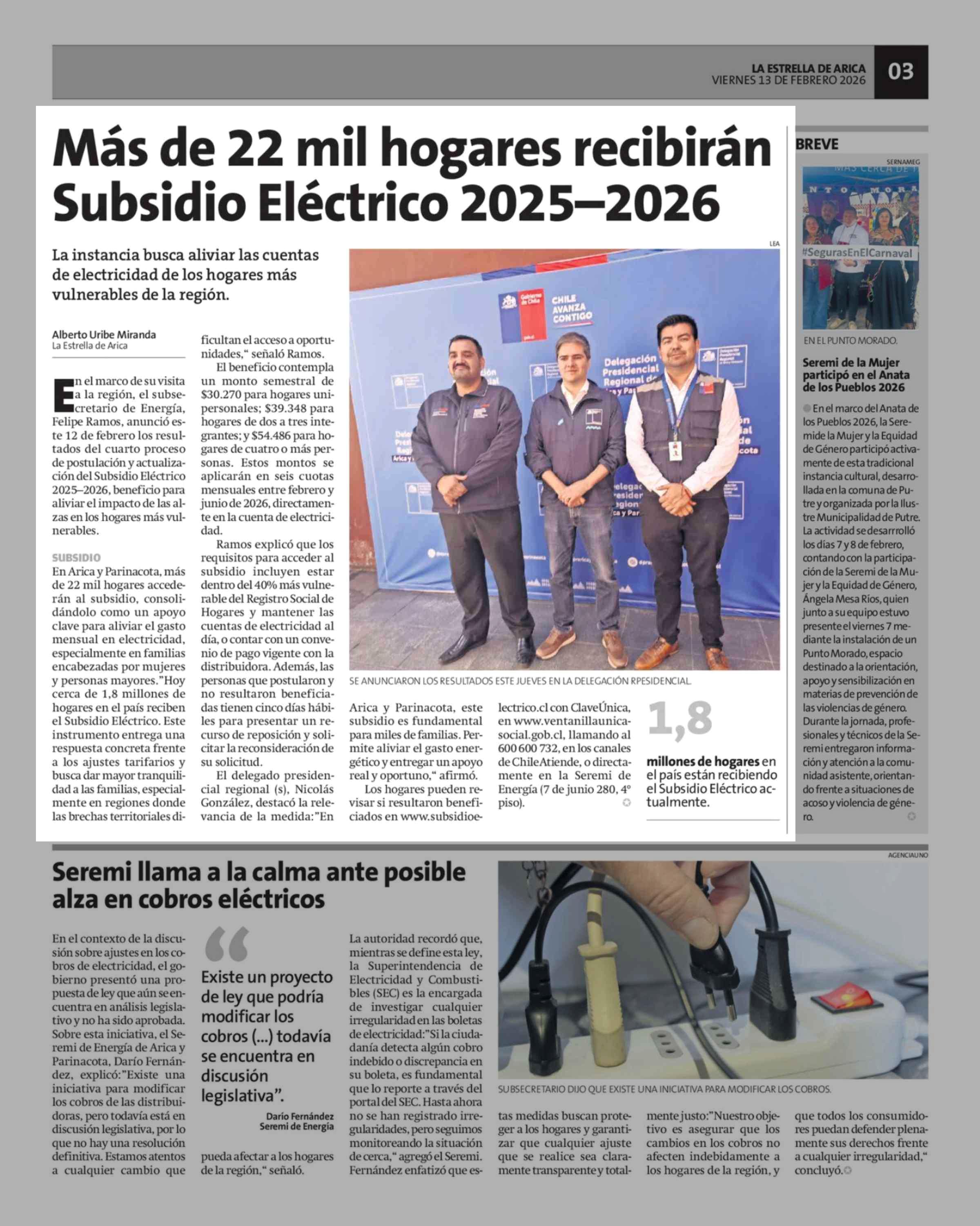 Título: Más de 22 mil hogares recibirán Subsidio Eléctrico 2025-2026