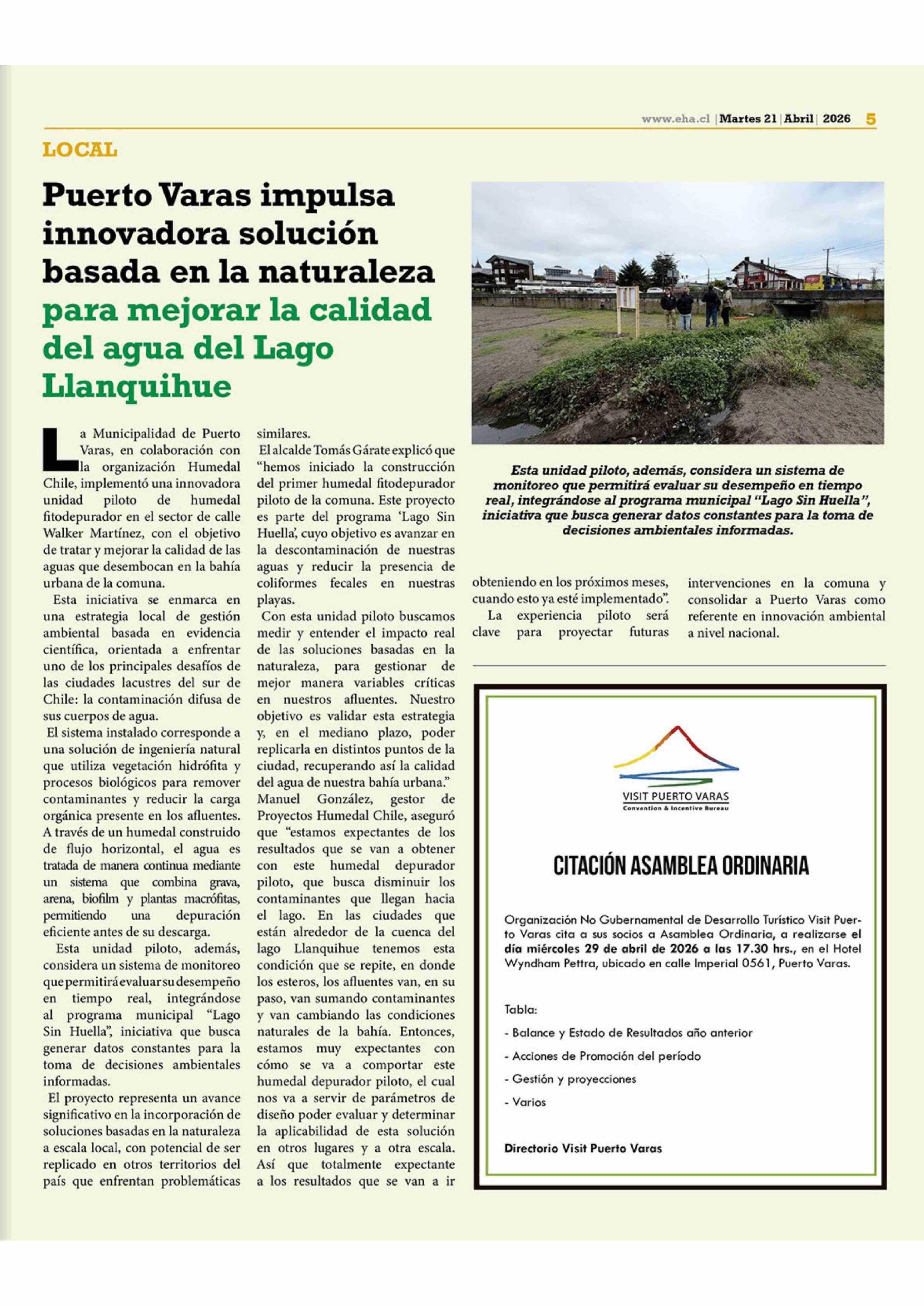 Título: Puerto Varas impulsa innovadora solución basada en la naturaleza para mejorar la calidad del agua del Lago Llanquihue