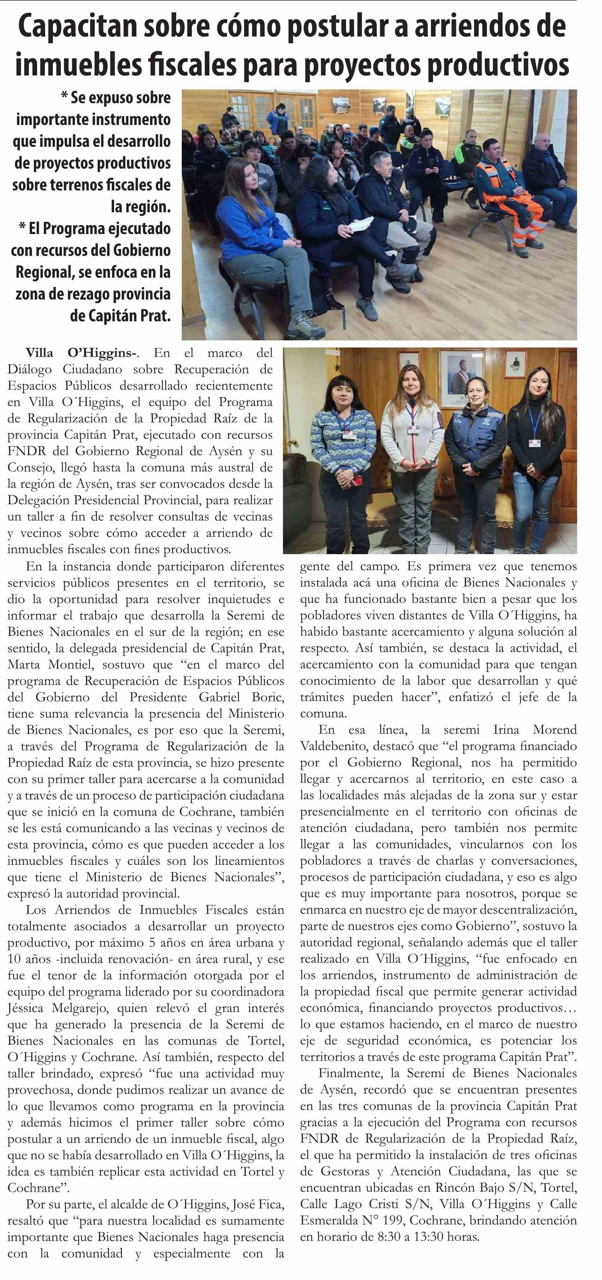 Capacitan sobre cómo postular a arriendos de inmuebles fiscales para proyectos productivos 19-07-2023 El Divisadero |