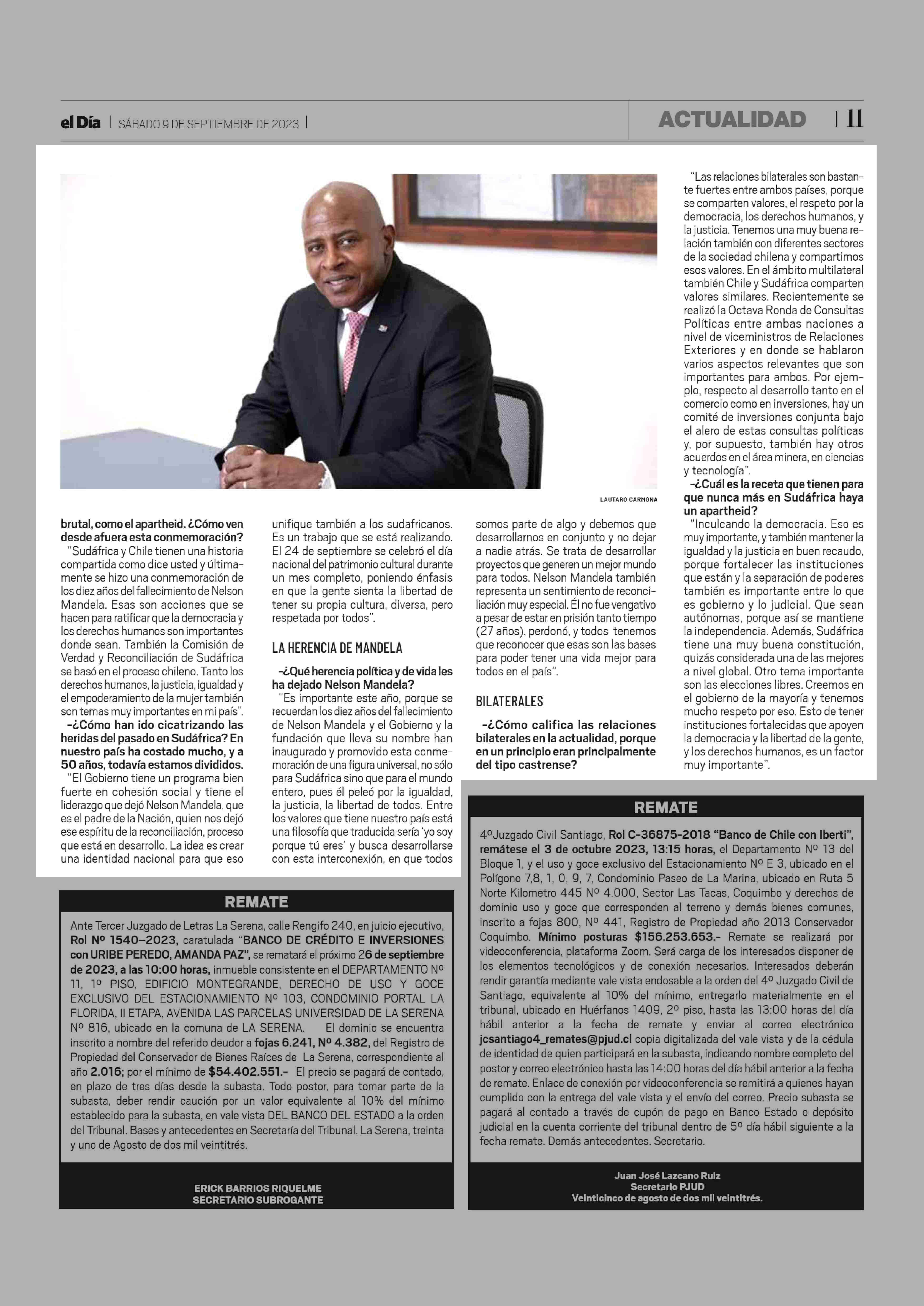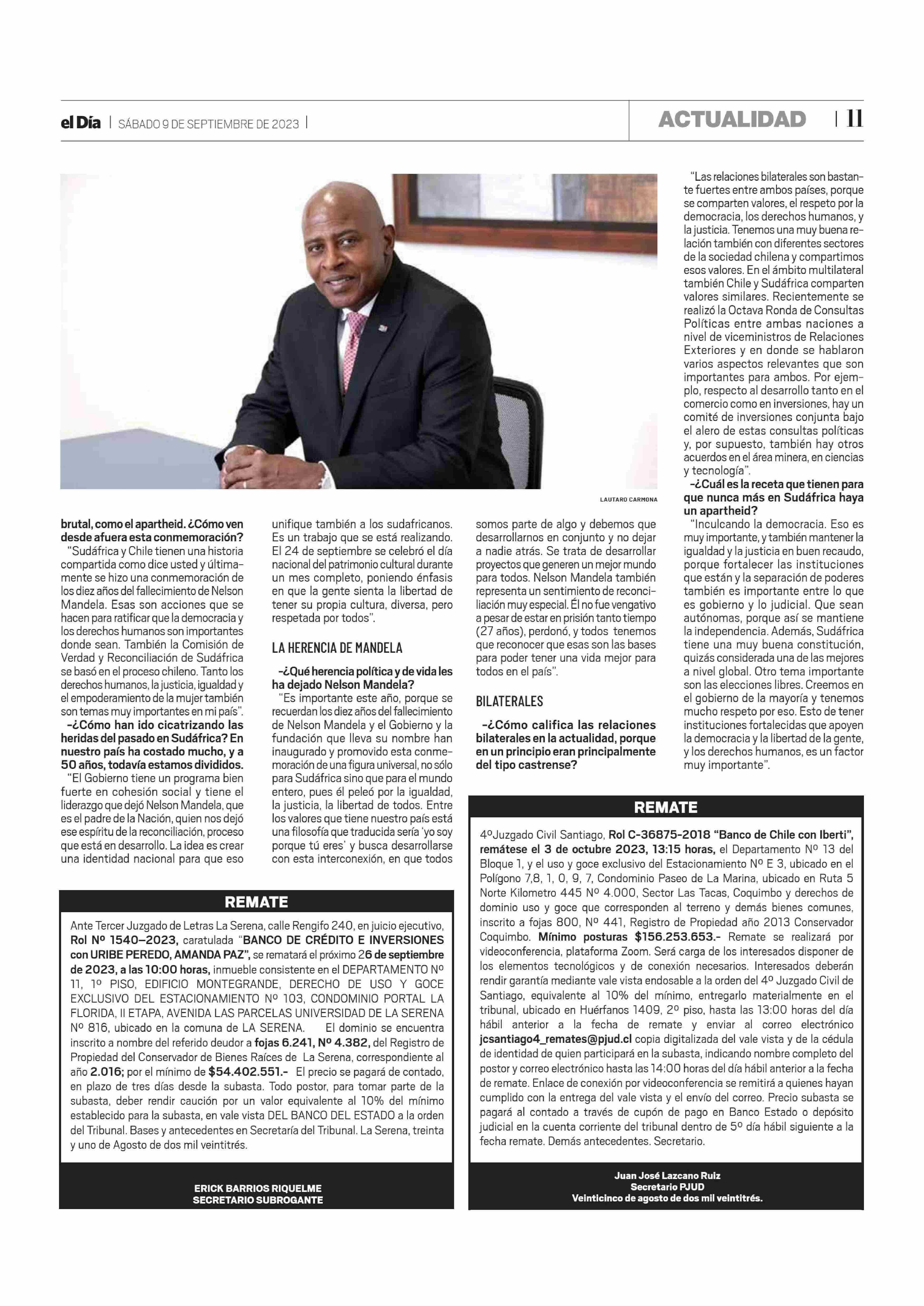 "Sudáfrica y Chile tienen una historia compartida" 09-09-2023 El Día |