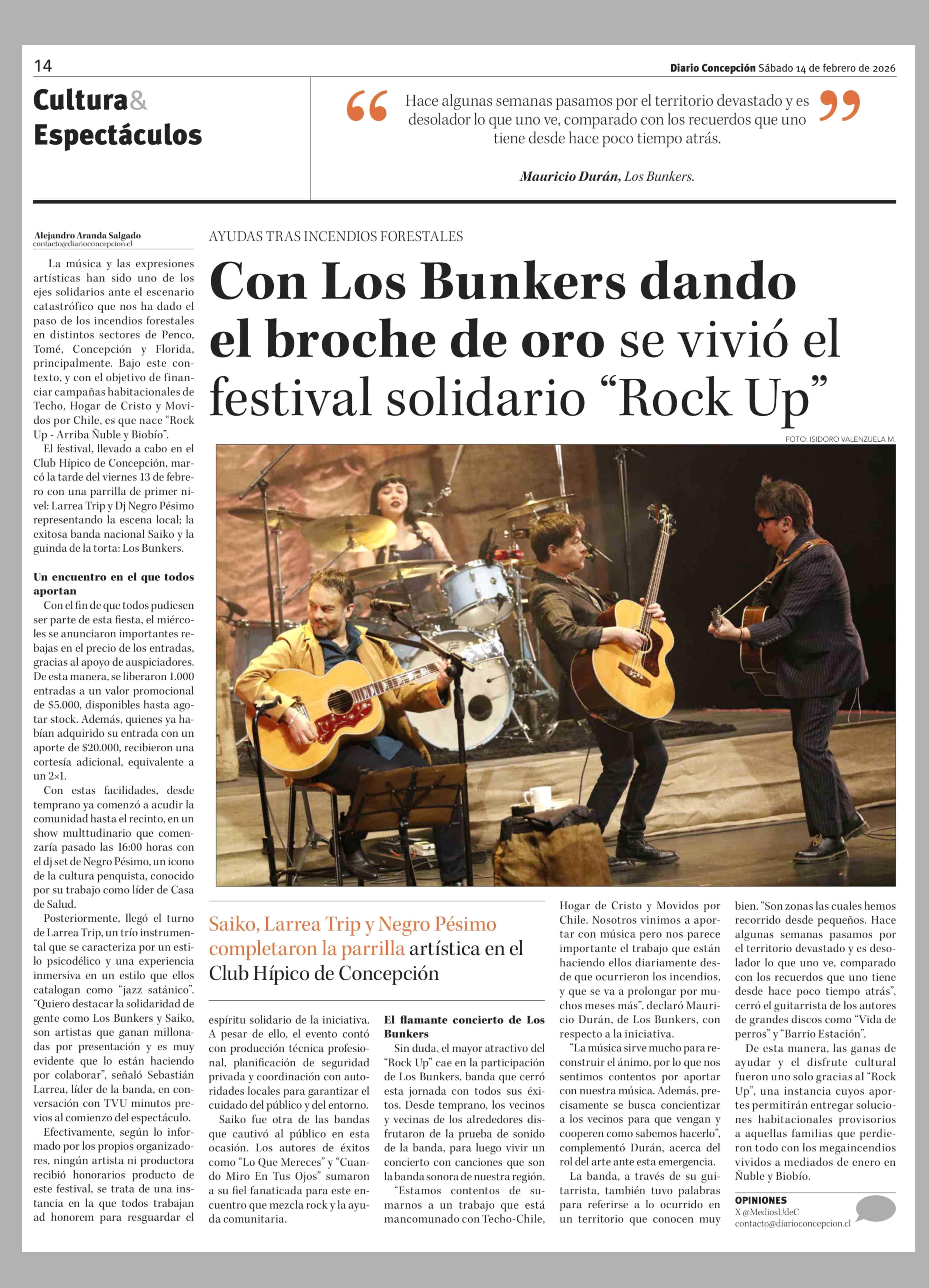 Con Los Bunkers dando el broche de oro se vivió el festival solidario "Rock Up" 14-02-2026 Diario Concepción |