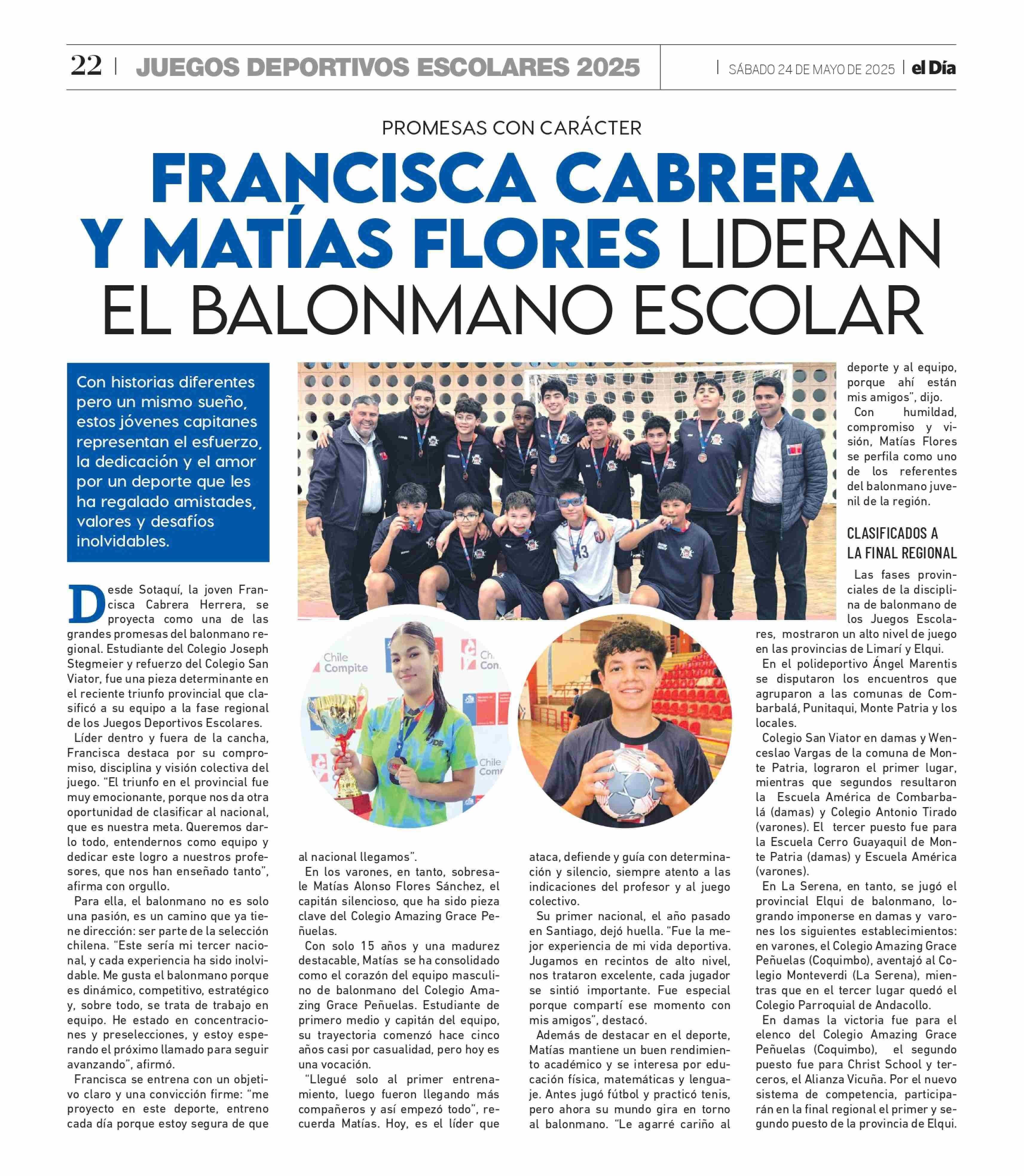 FRANCISCA CABRERA Y MATÍAS FLORES LIDERAN EL BALONMANO ESCOLAR 24-05-2025 El Día |