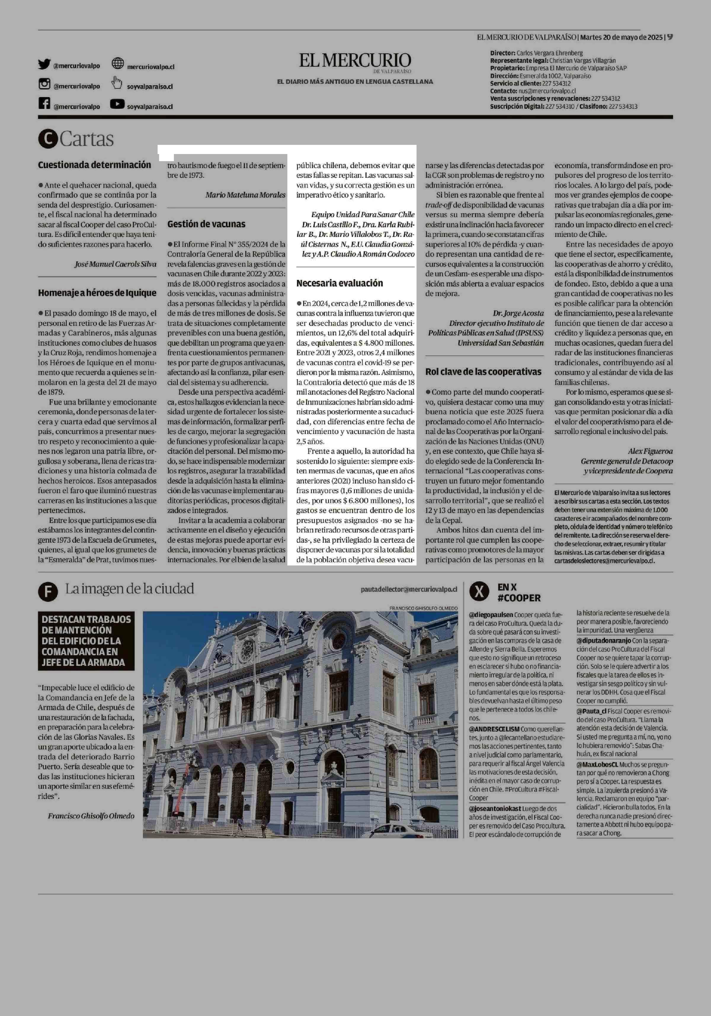 CARTAS: Gestión de vacunas 20-05-2025 El Mercurio de Valparaíso |
