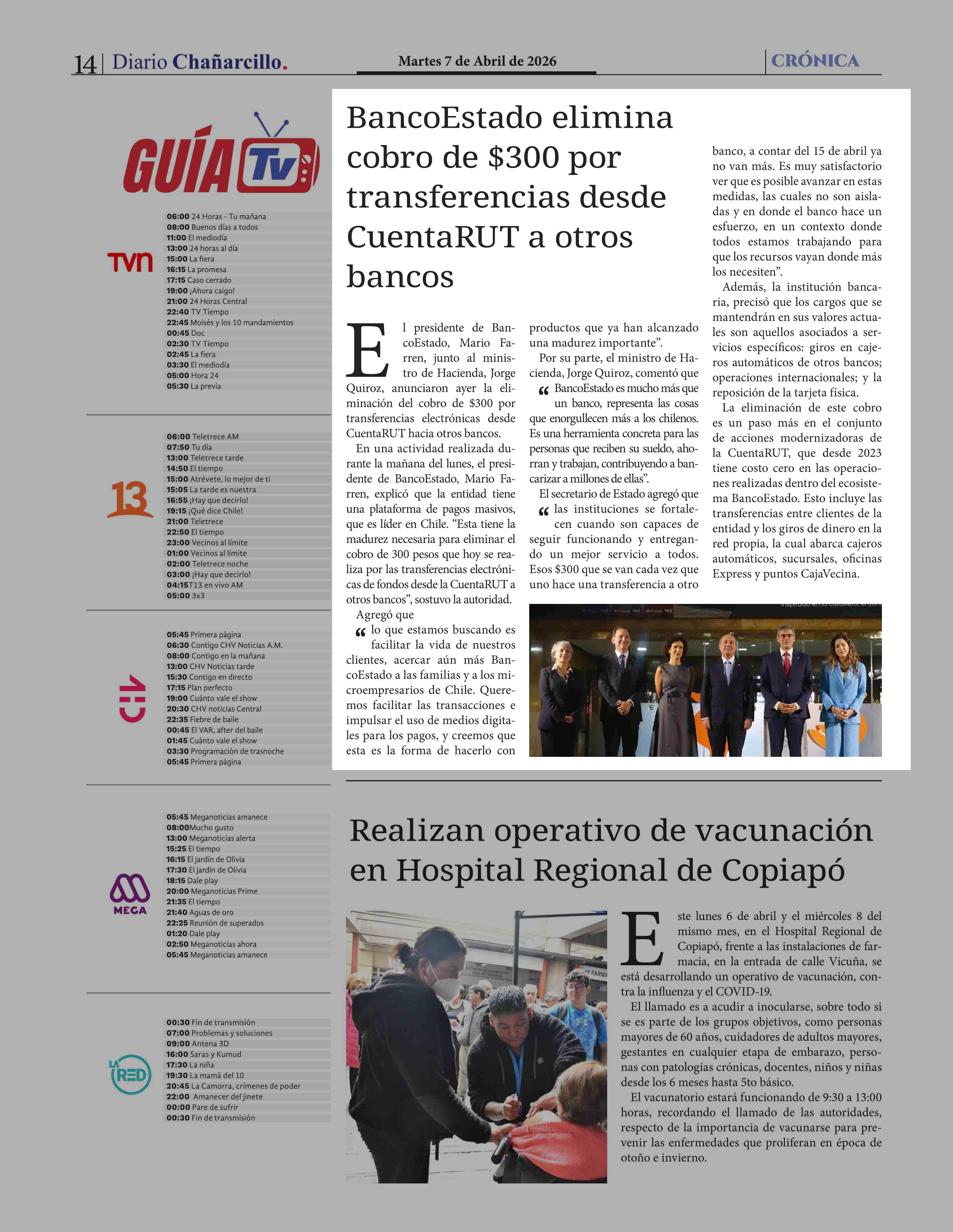 Fuente: Diario Chañarcillo (Diario Chanarcillo) Página(s): 14