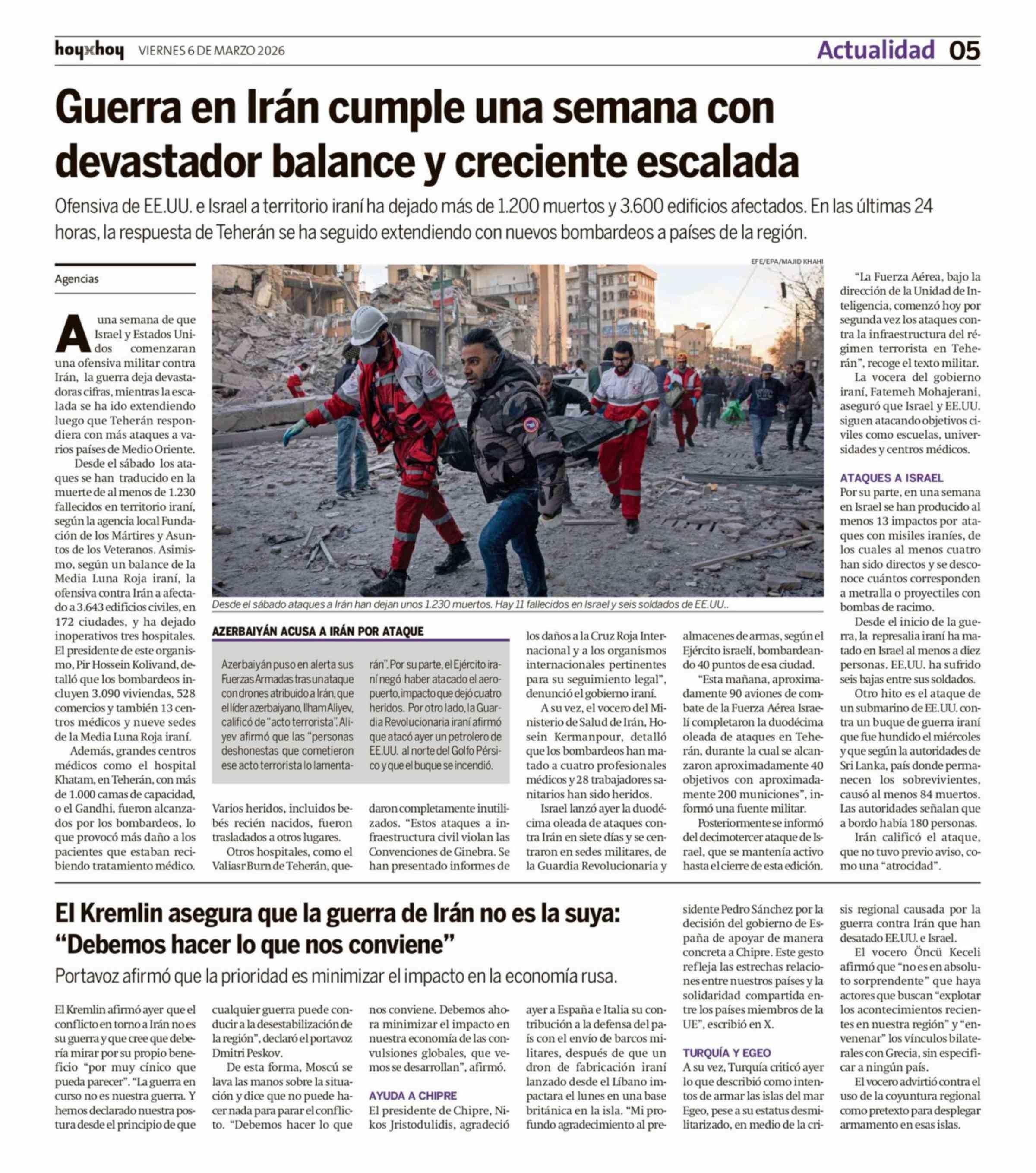| Título: | Guerra en Iran cumple una semana con devastador balance y creciente escalada |