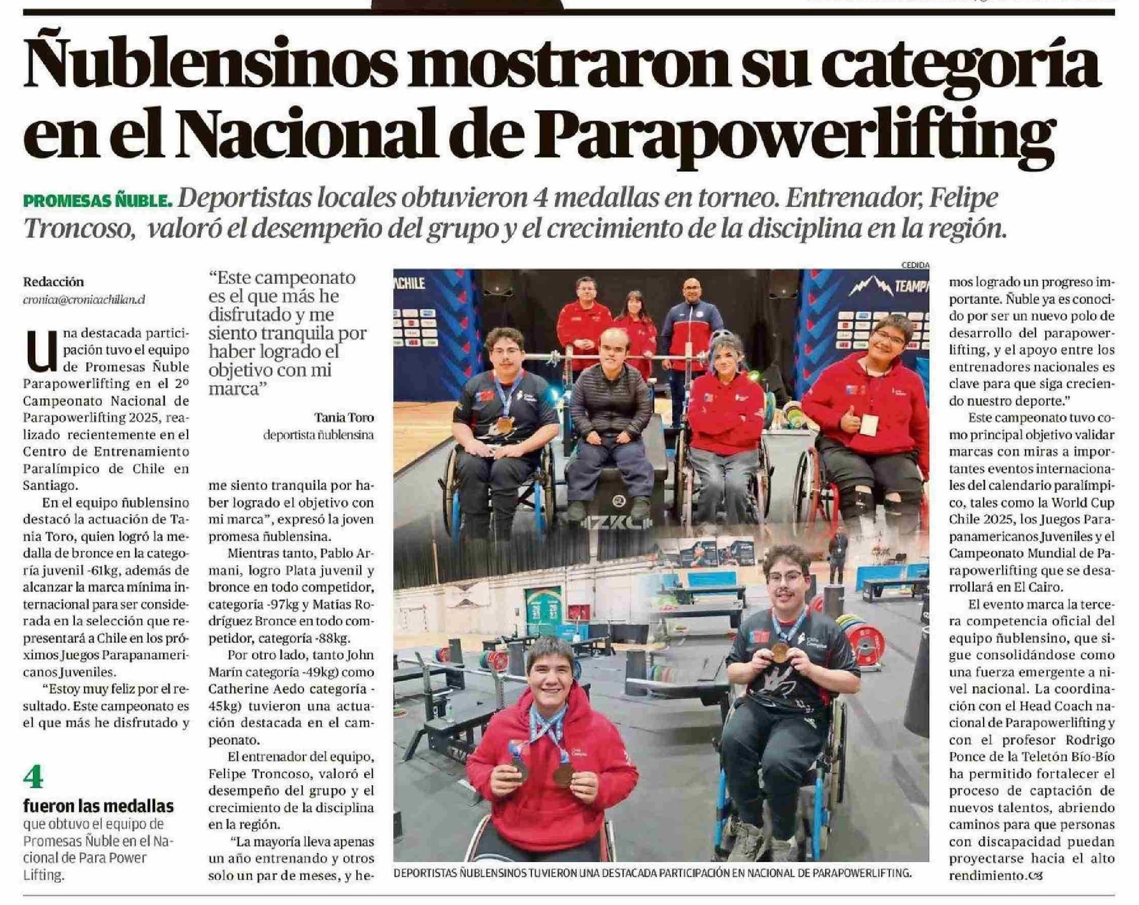Ñublensinos mostraron su categoría en el Nacional de Parapowerlifting 18-06-2025 Crónica de Chillán |