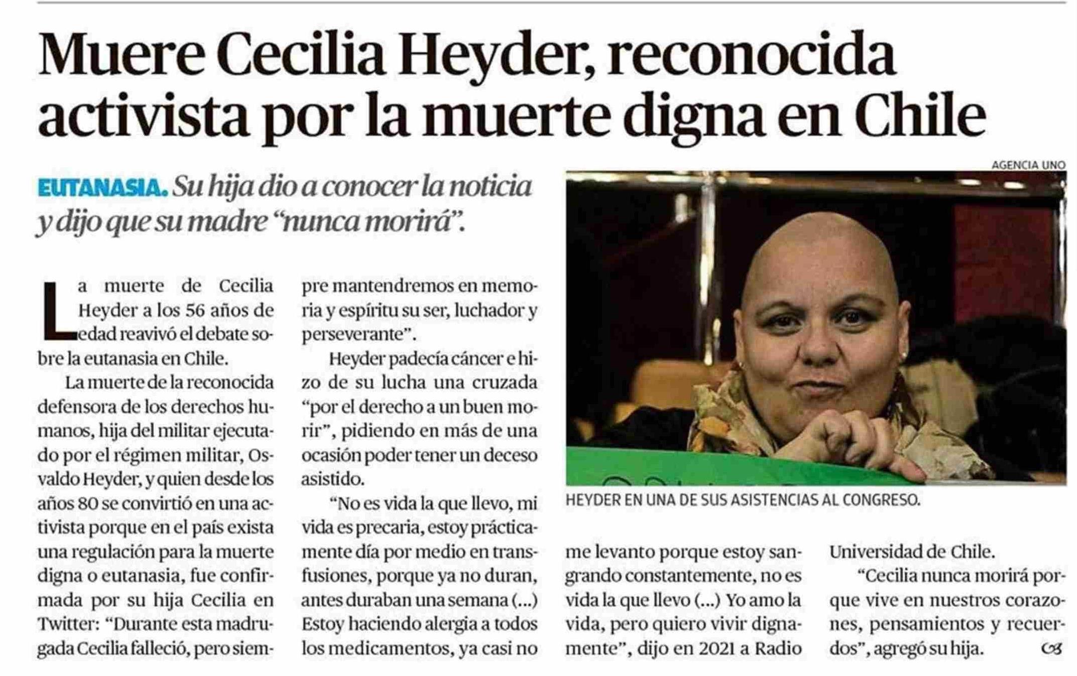 | Título: | Muere Cecilia Heyder, reconocida activista por la muerte digna en Chile |