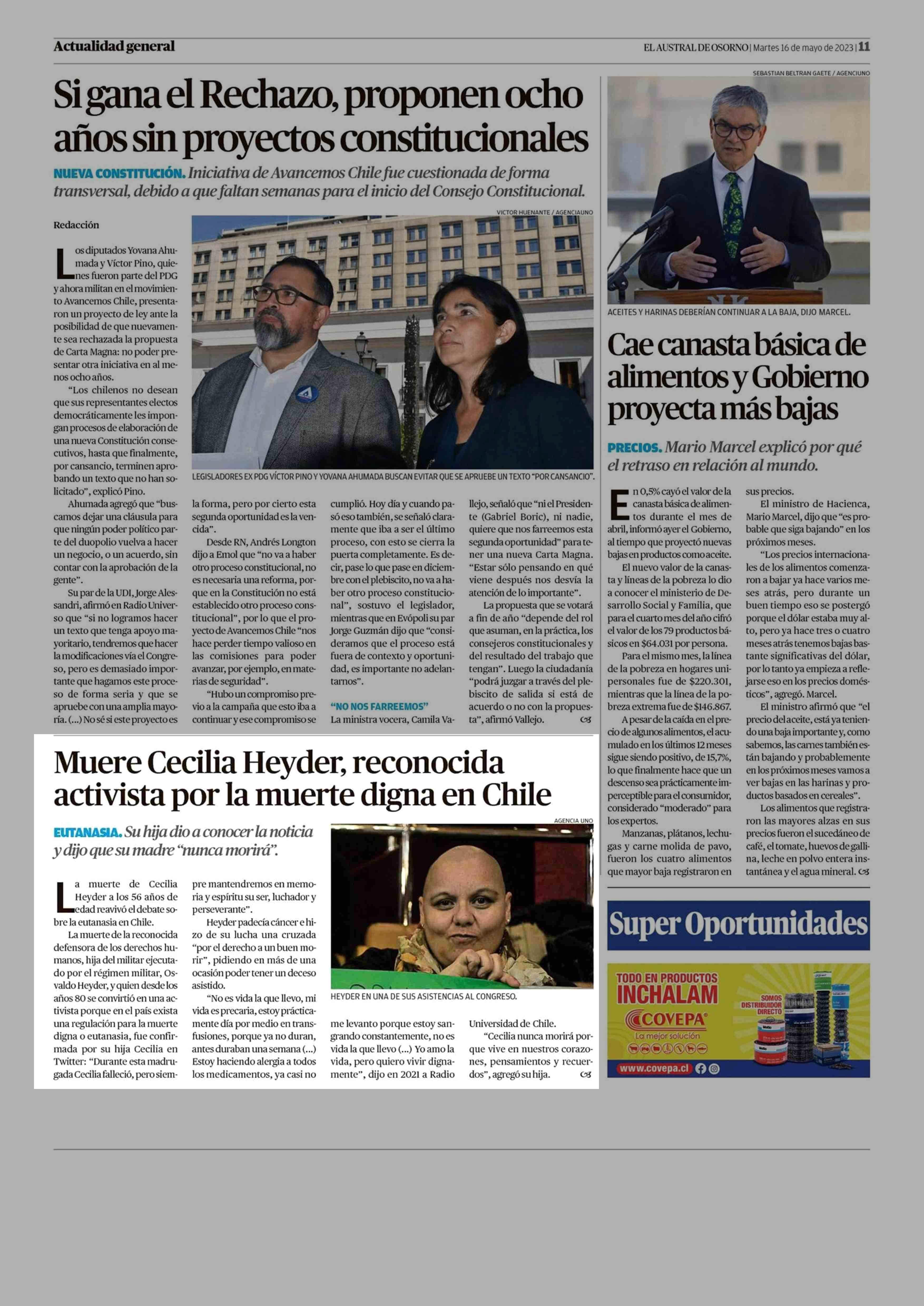 Muere Cecilia Heyder, reconocida activista por la muerte digna en Chile 16-05-2023 El Austral de Osorno |