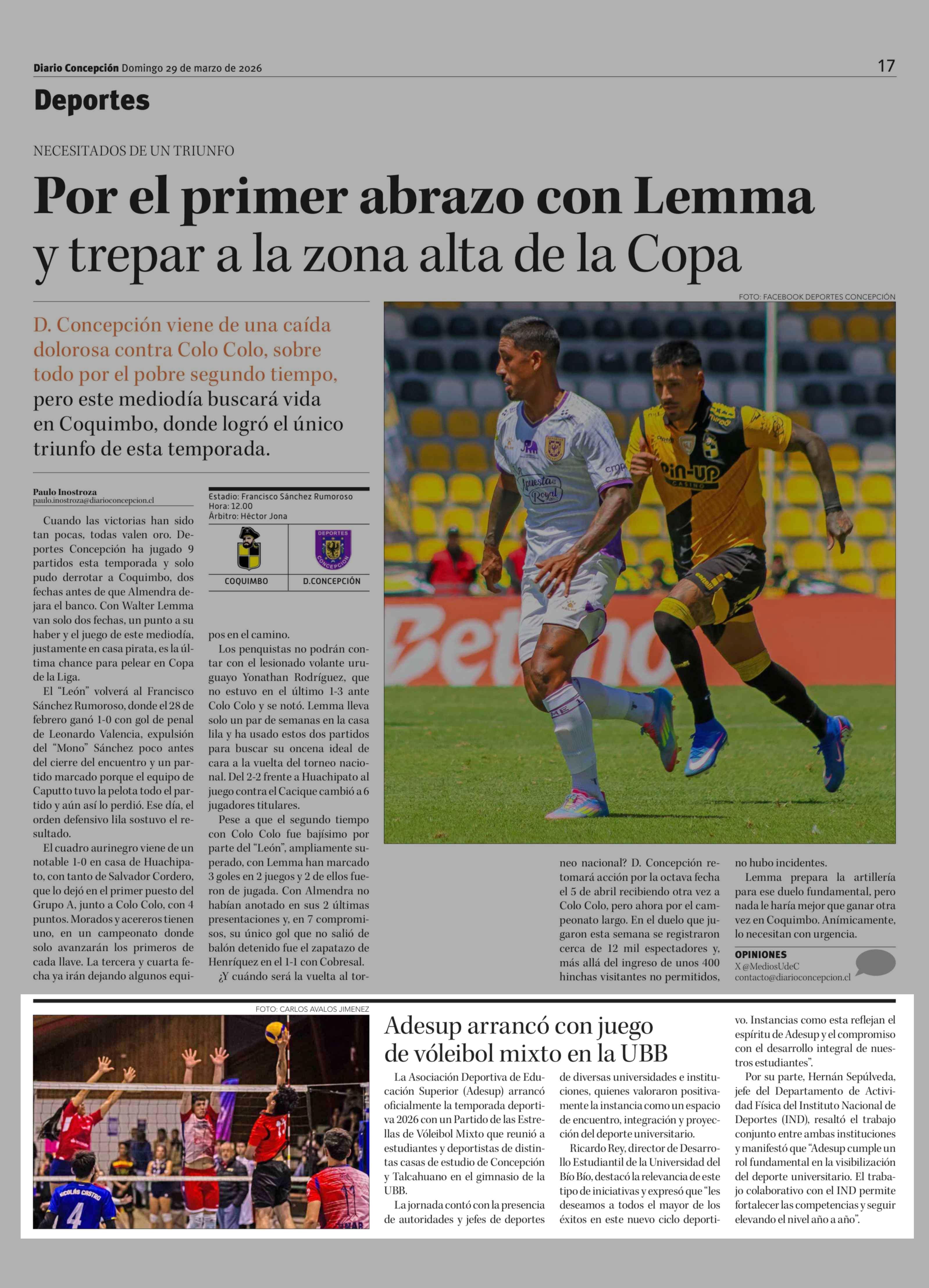 Adesup arrancó con juego de vóleibol mixto en la UBB 30-03-2026 Diario Concepción |