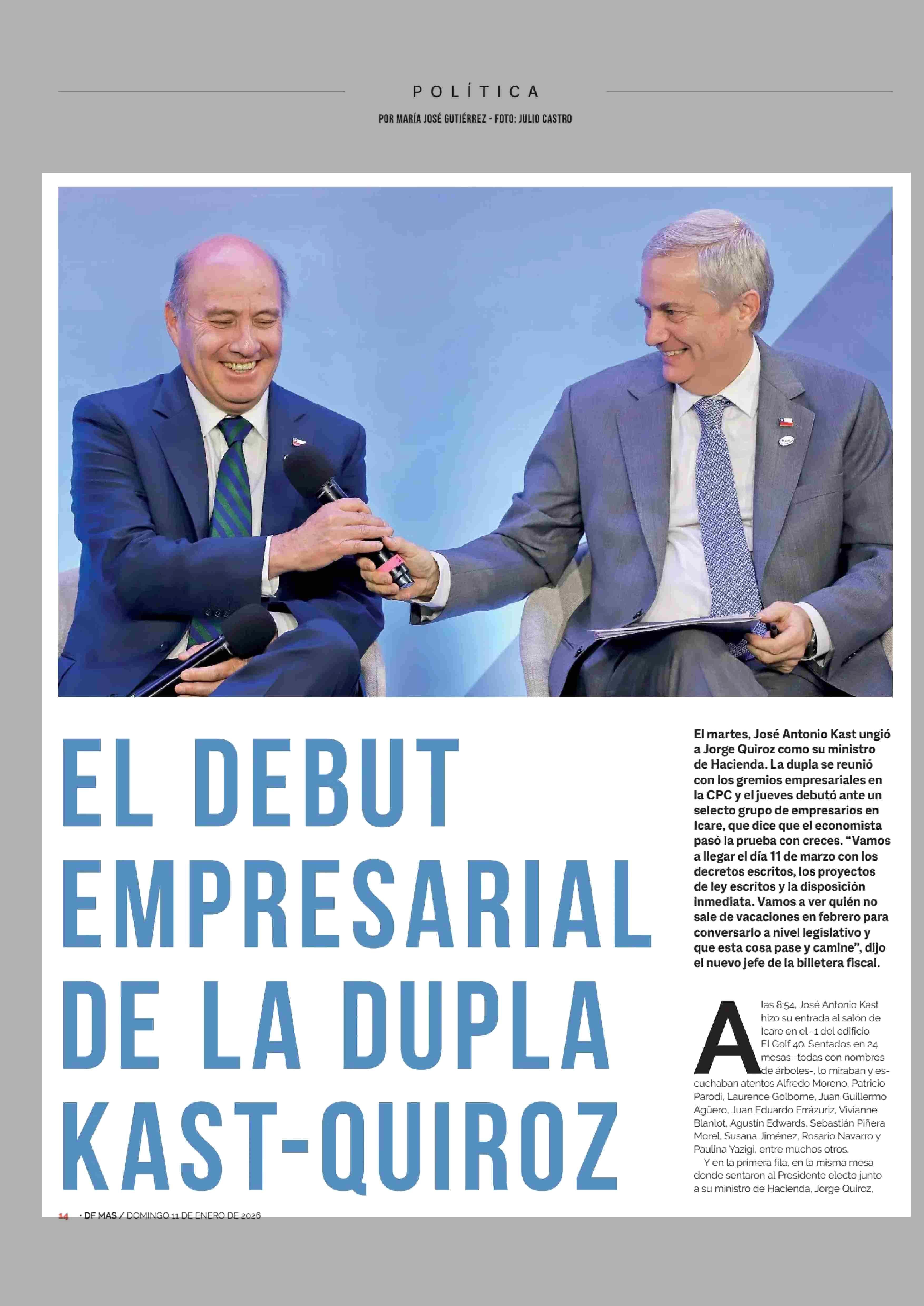 EL DEBUT EMPRESARIAL DE LA DUPLA KAST-QUIROZ 11-01-2026 Diario Financiero |