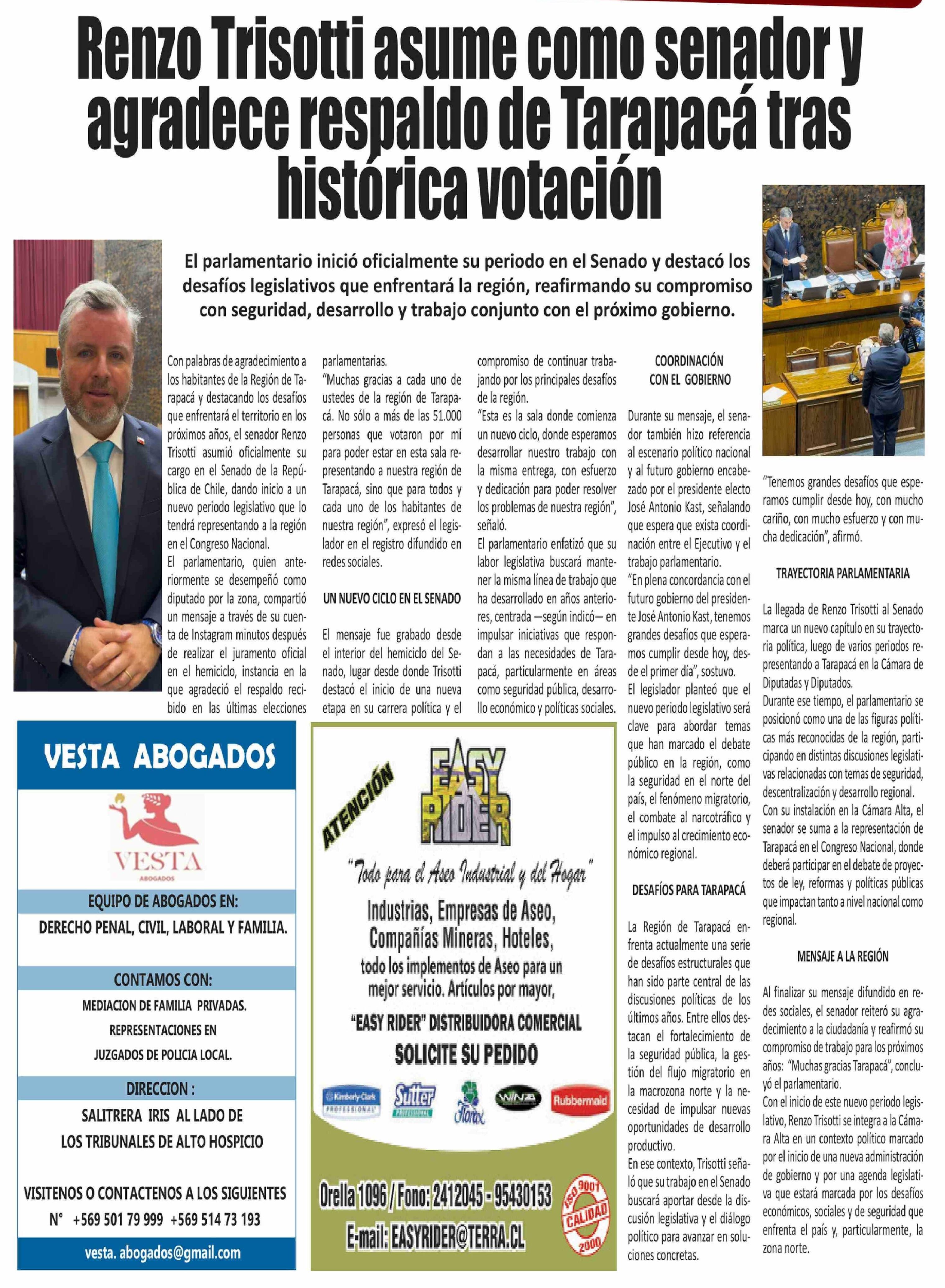 | Título: | Renzo Trisotti asume como senador y agradece respaldo de Tarapacá tras histórica votación |