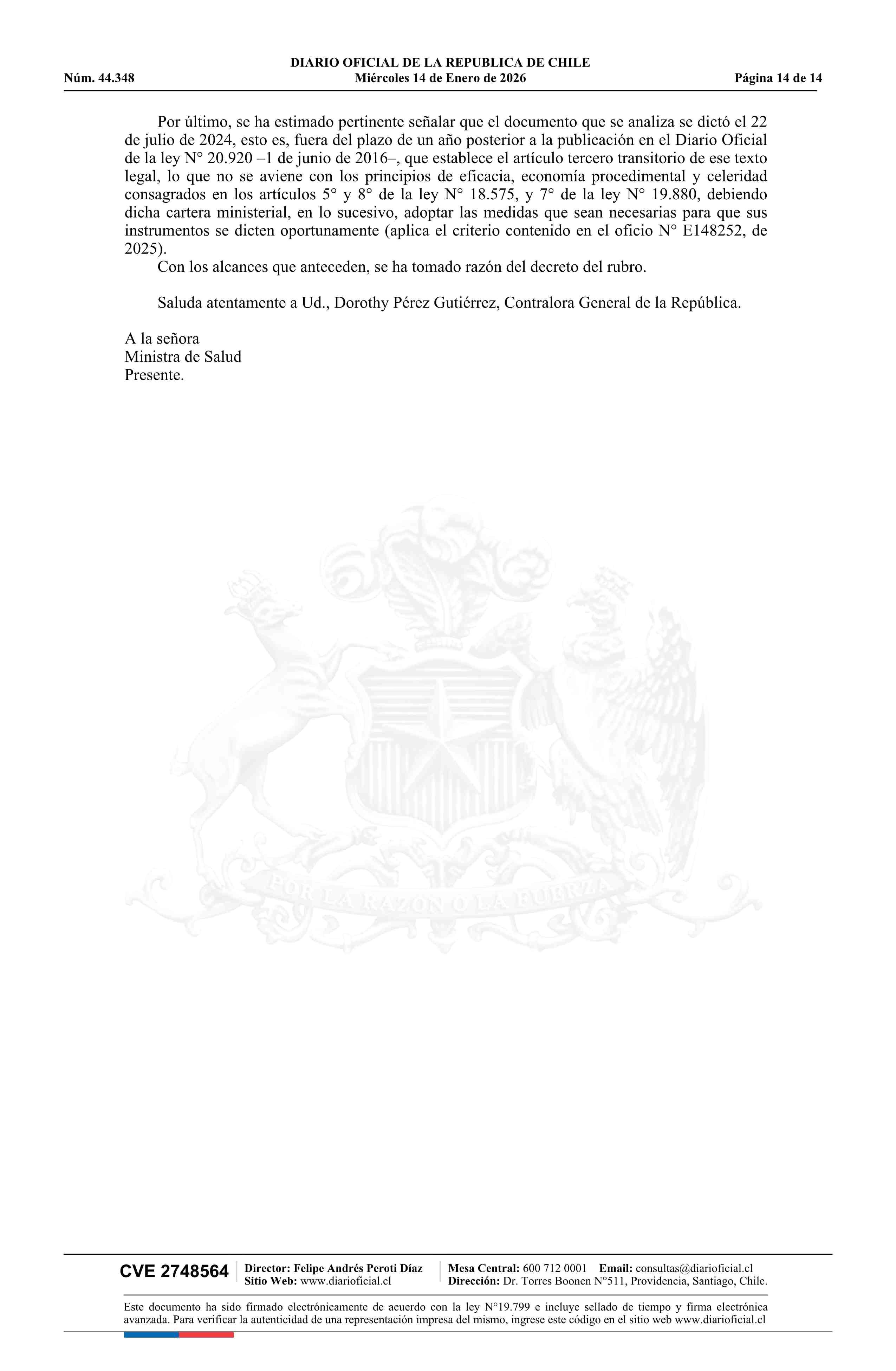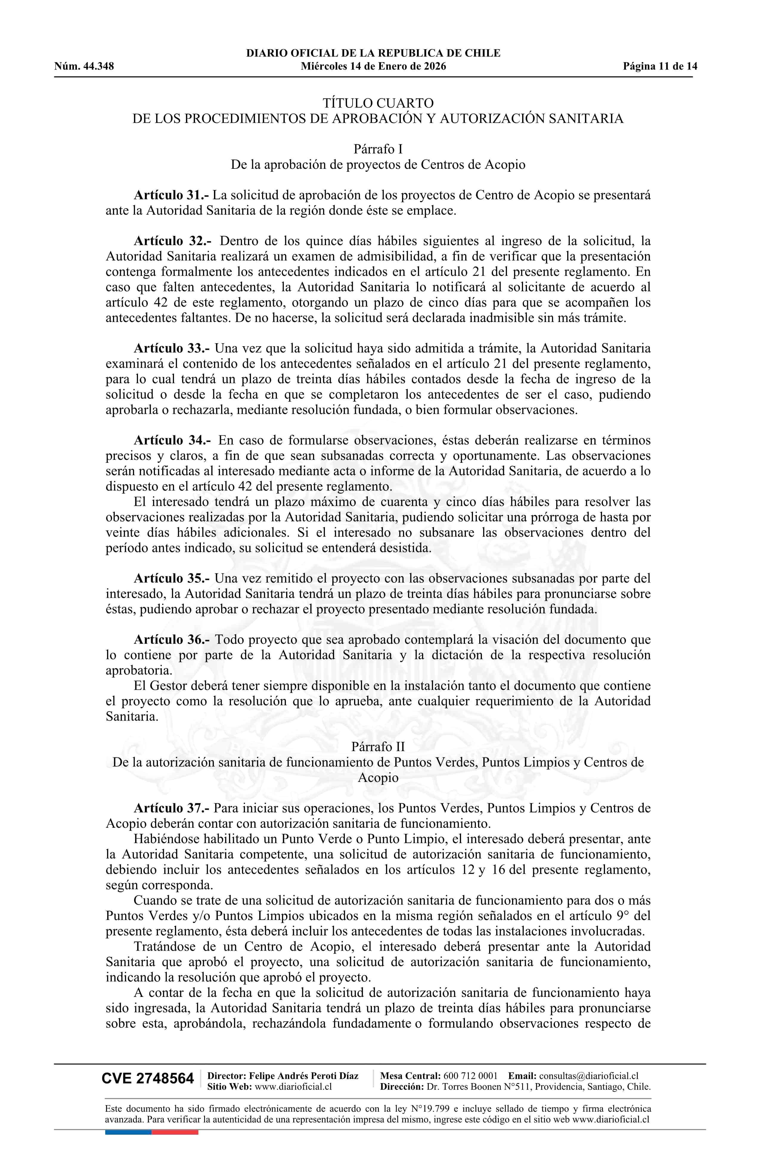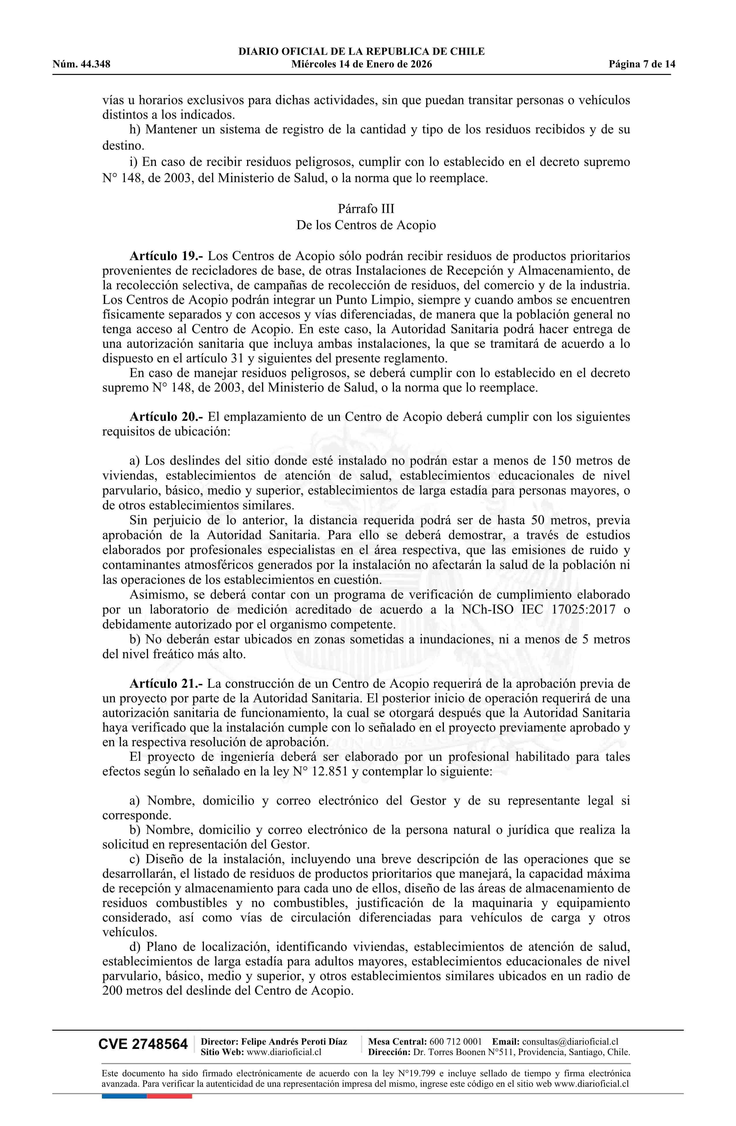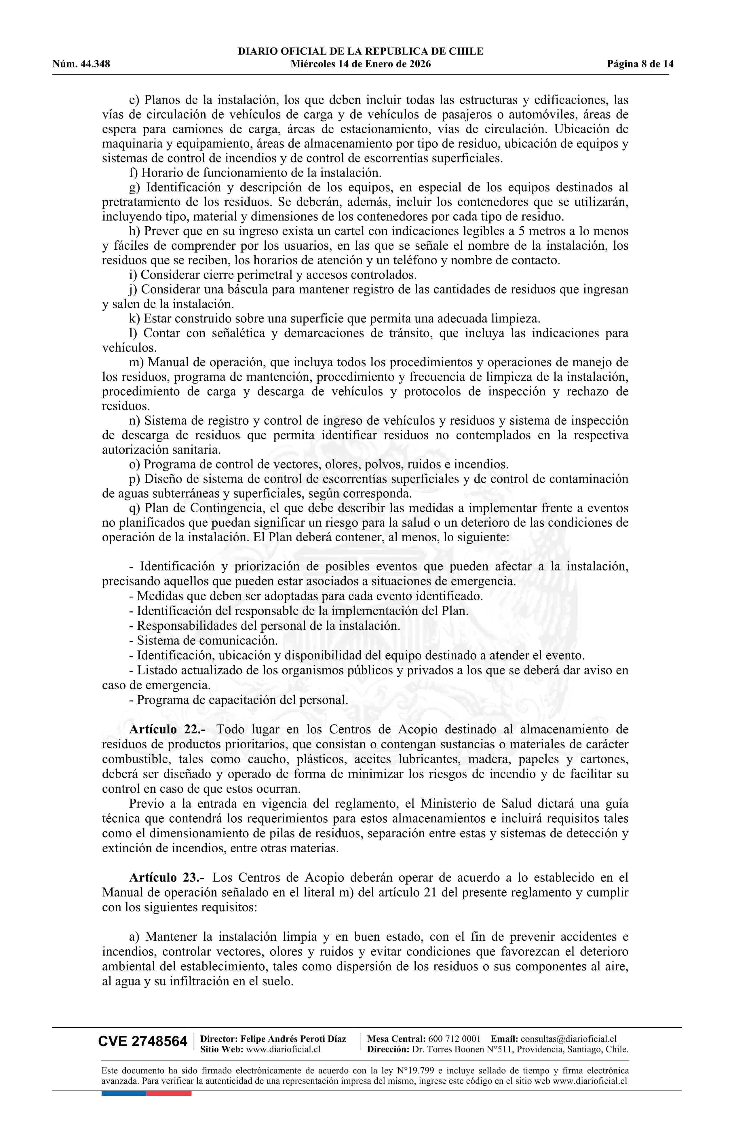Decreto número 29, de 2024.- Aprueba Reglamento Sanitario sobre Labores de Recepción y Almacenamiento de Residuos de Productos Prioritarios 14-01-2026 Diario Oficial Edición Electrónica |