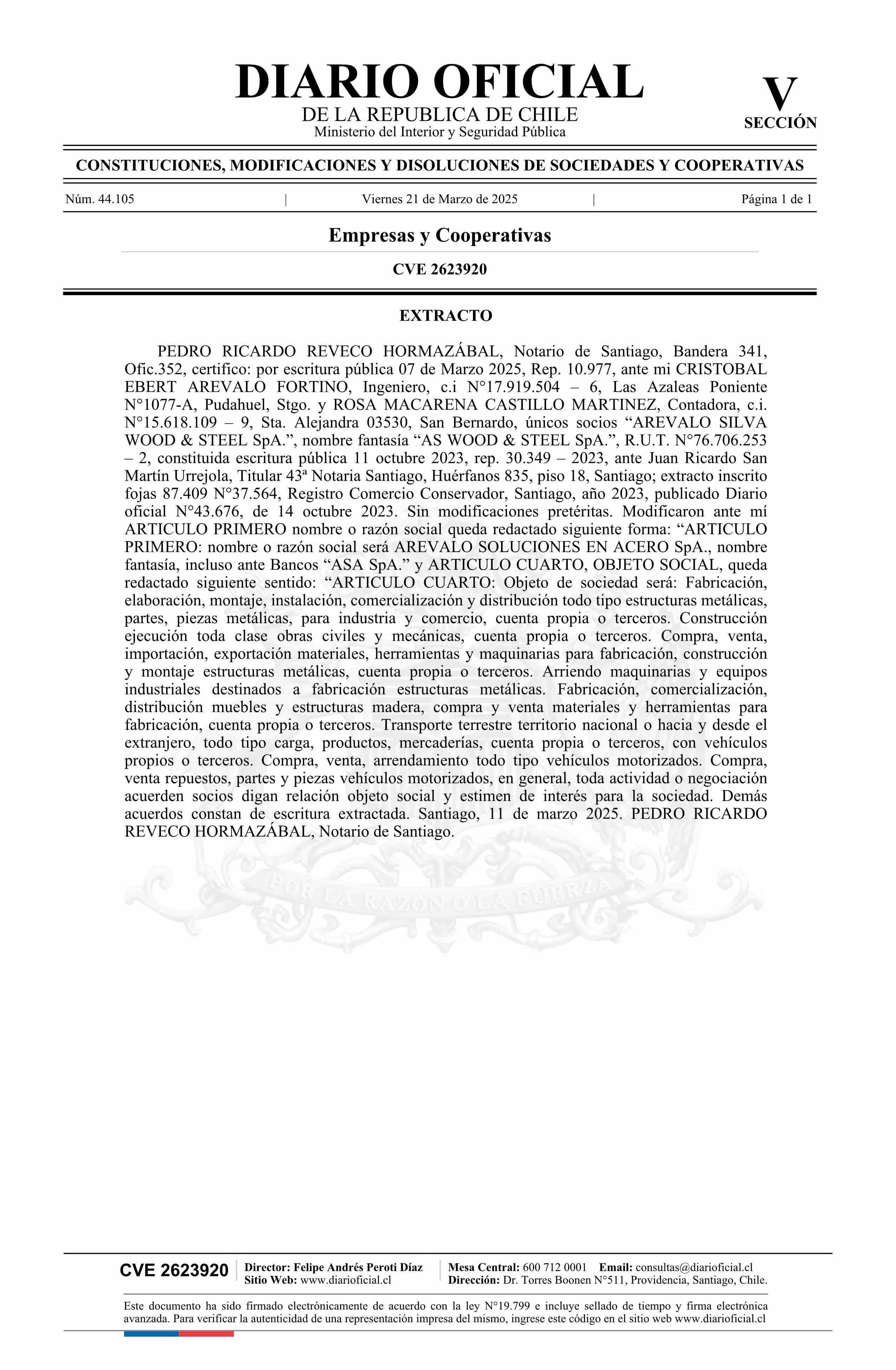 AREVALO SILVA WOOD & STEEL SpA 76.706.253-2* 21-03-2025 Diario Oficial Edición Electrónica |