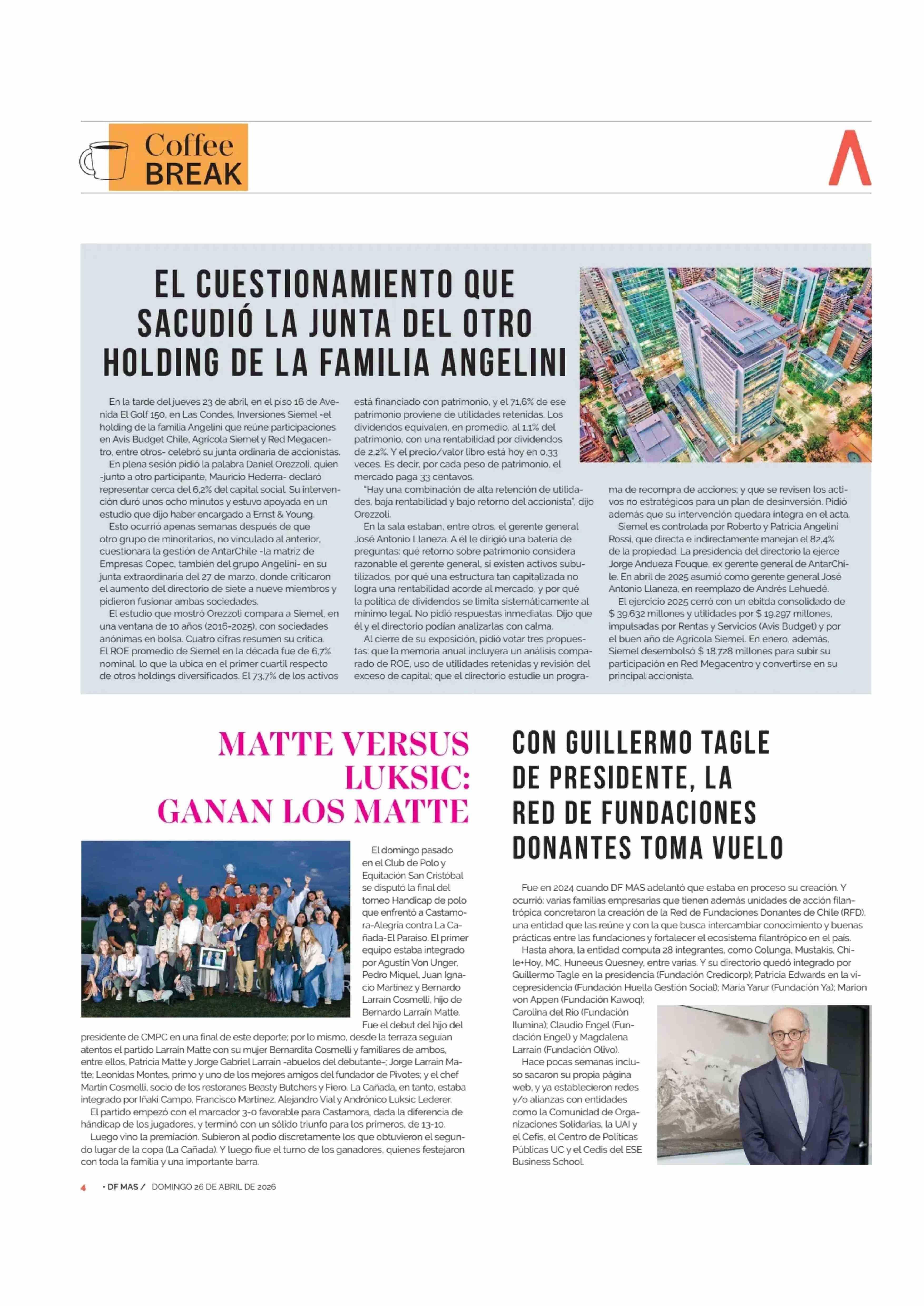CON GUILLERMO TAGLE DE PRESIDENTE, LA RED DE FUNDACIONES DONANTES TOMA VUELO 26-04-2026 Diario Financiero |