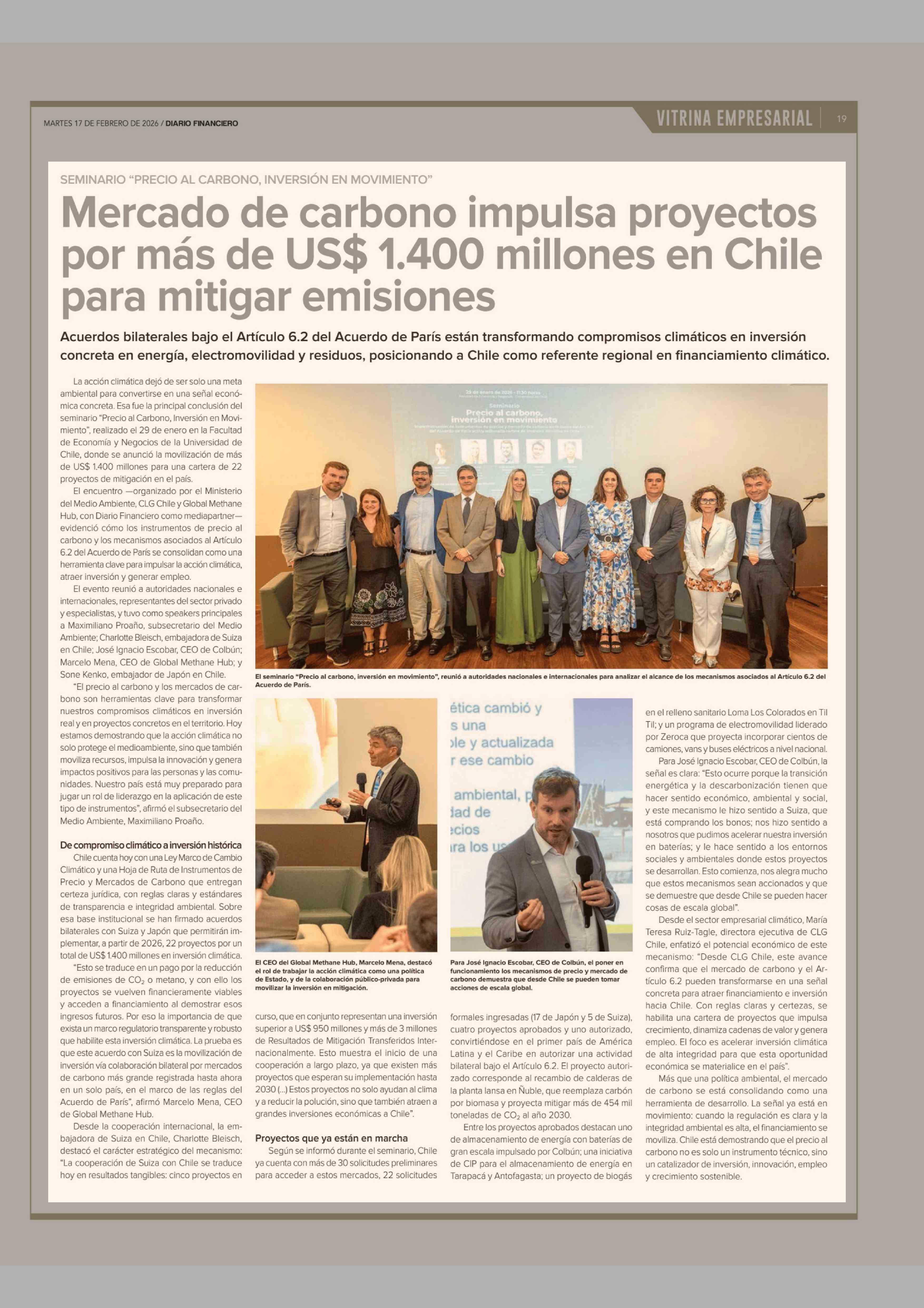 Título: Mercado de carbono impulsa proyectos por más de US$ 1.400 millones en Chile para mitigar emisiones