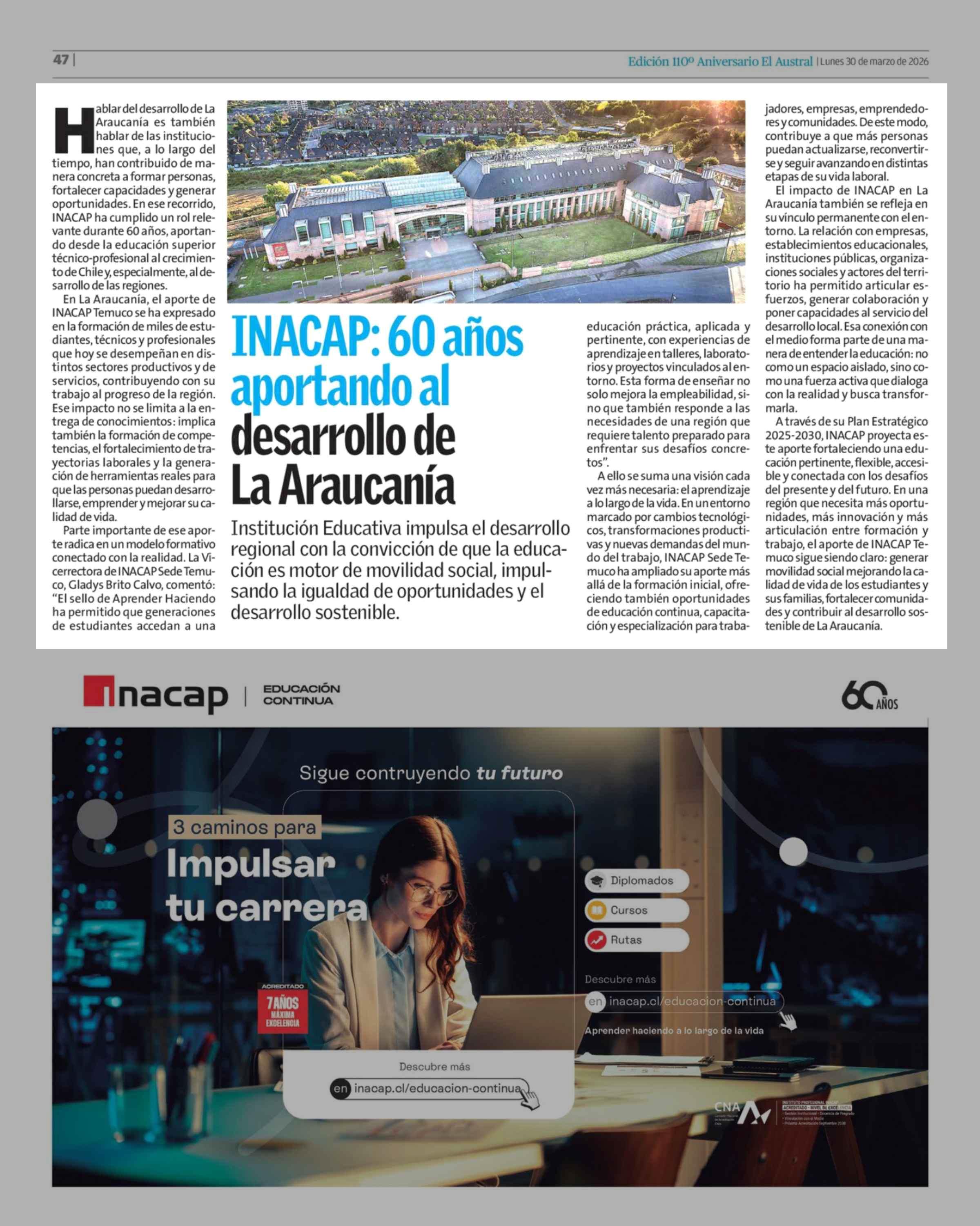 INACAP: 60 años aportando al desarrollo de La Araucanía 30-03-2026 El Austral de la Araucanía |