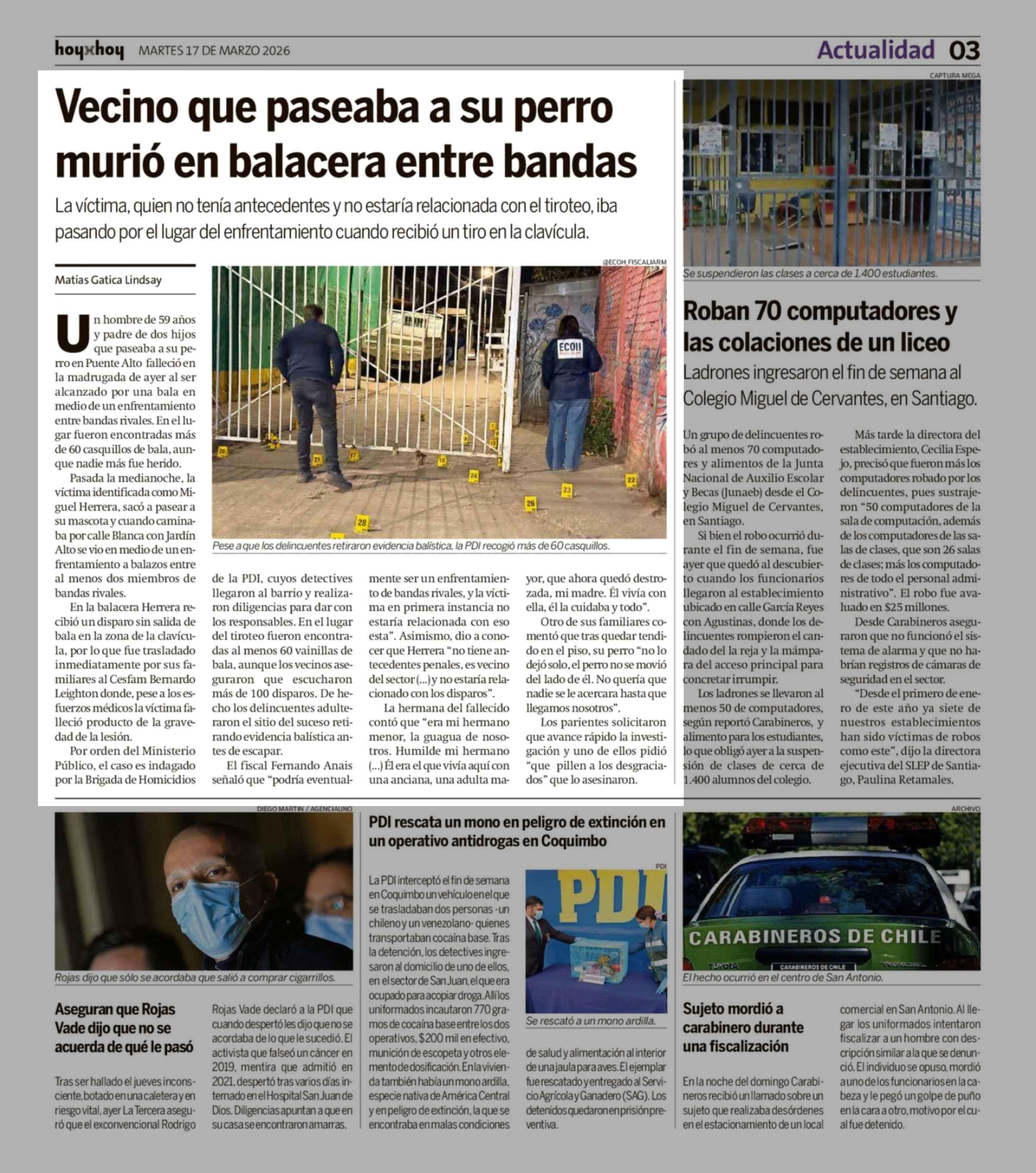 Vecino que paseaba a su perro murió en balacera entre bandas 17-03-2026 Hoy x Hoy |