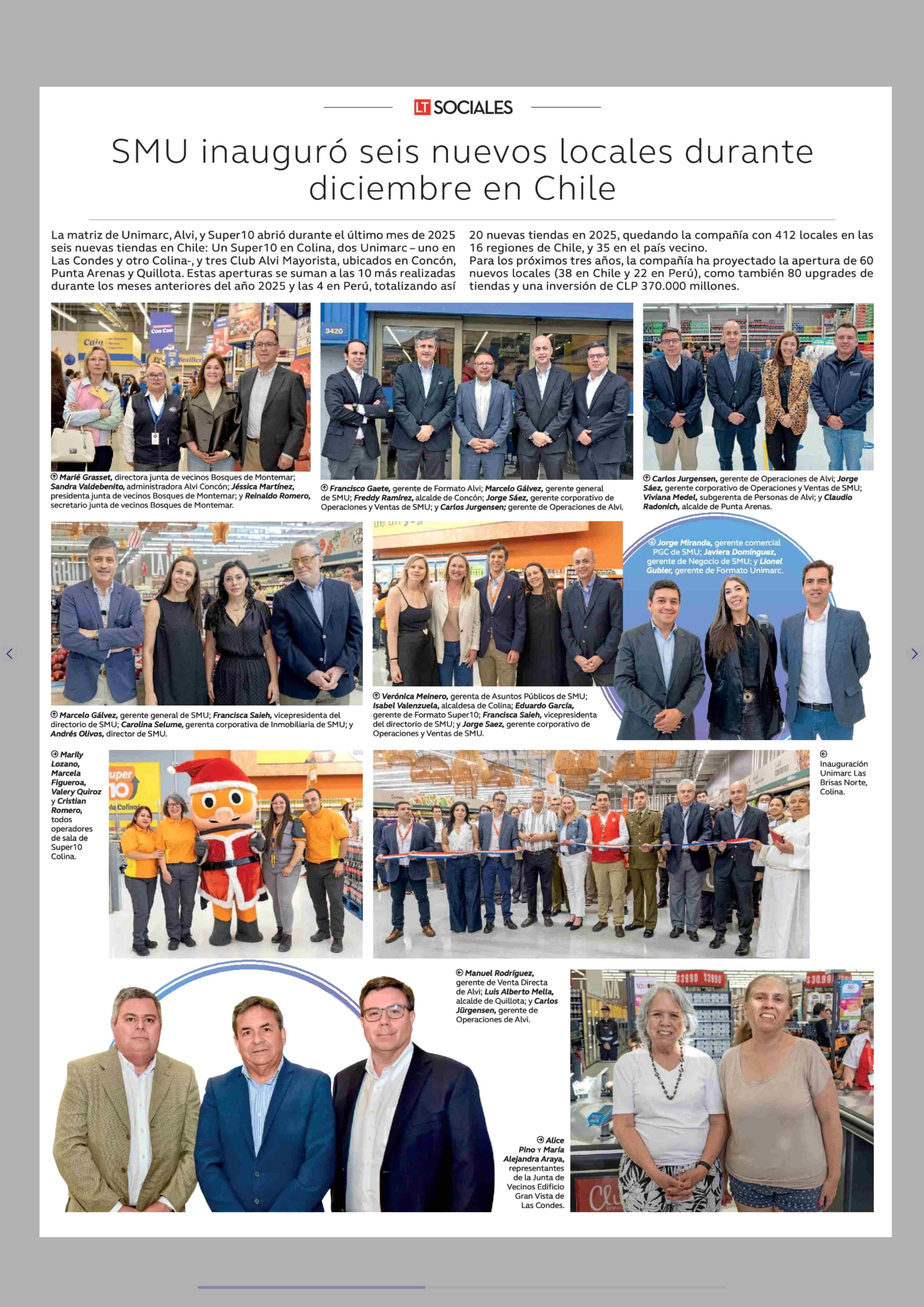 SMU inauguró seis nuevos locales durante diciembre en Chile 11-01-2026 La Tercera |