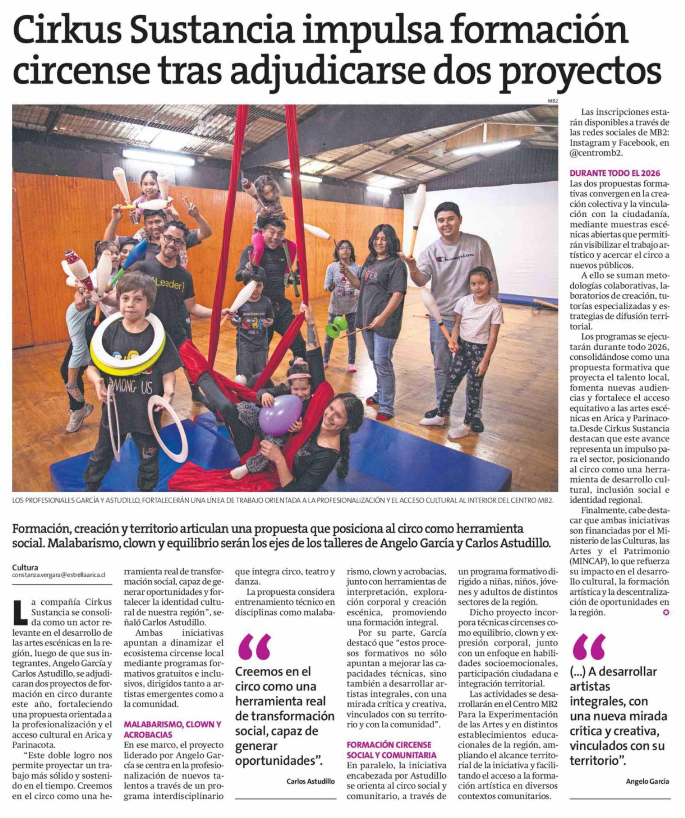 Título: Cirkus Sustancia impulsa formación circense tras adjudicarse dos proyectos