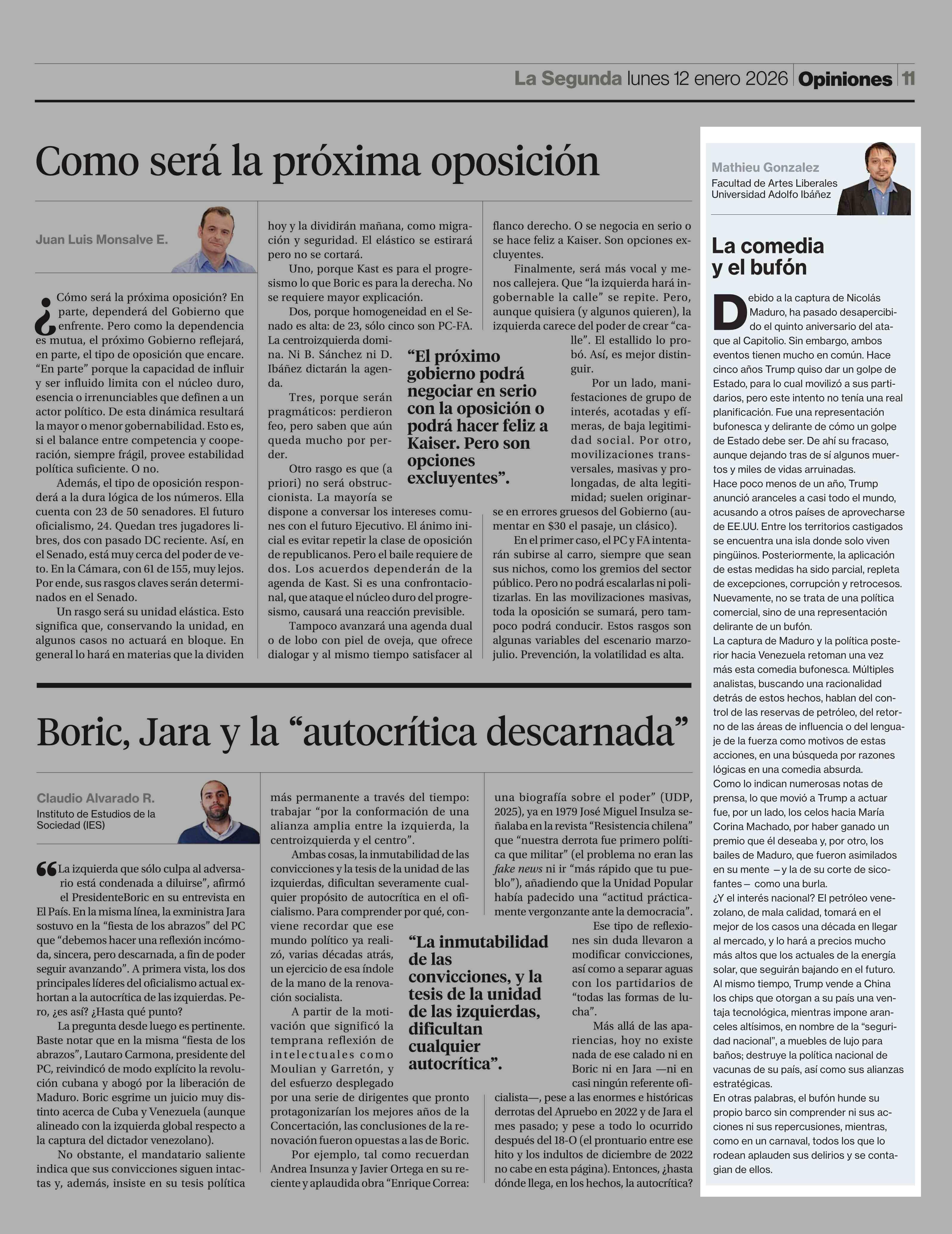 Columnas de Opinión: La comedia y el bufón 12-01-2026 La Segunda |