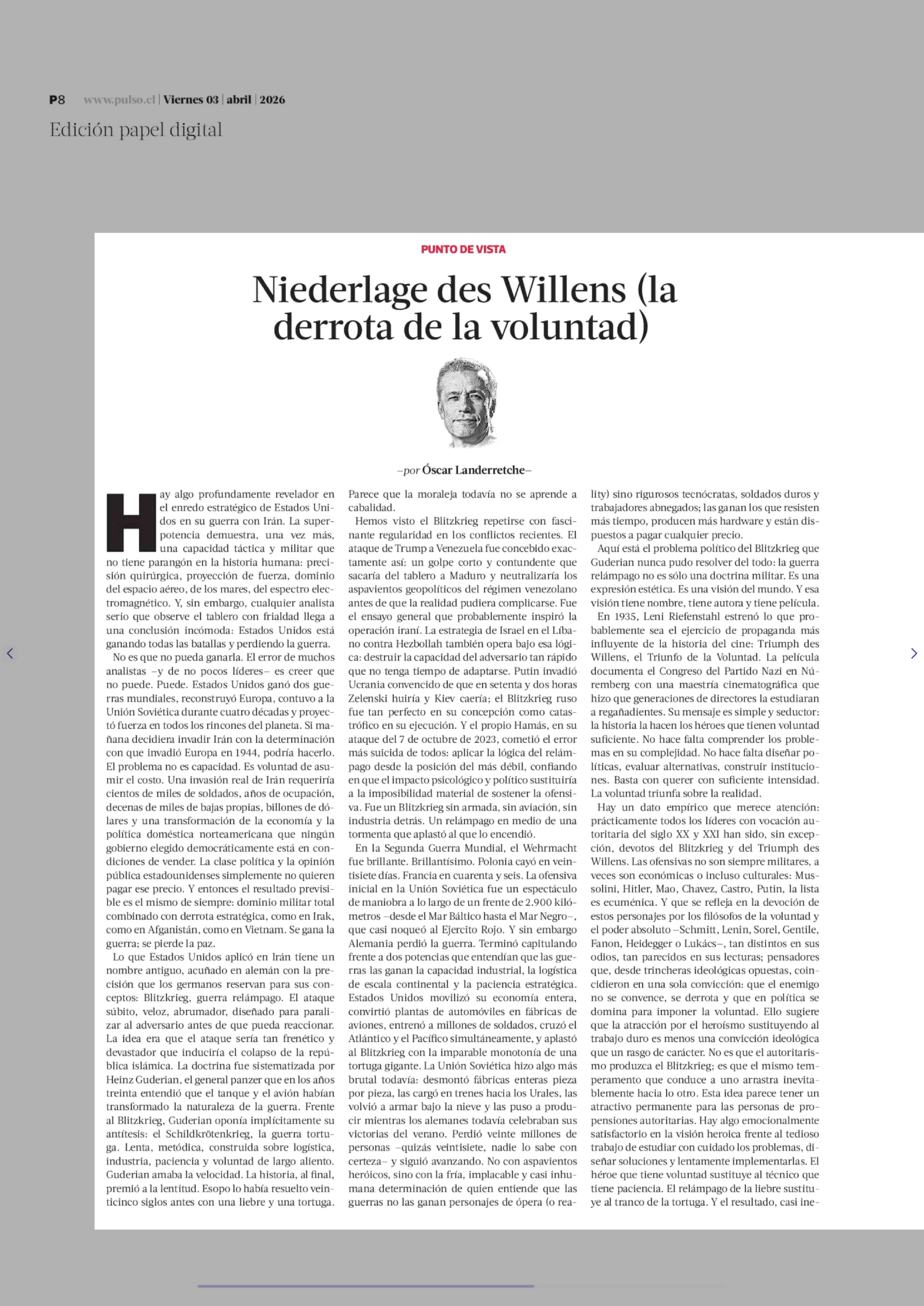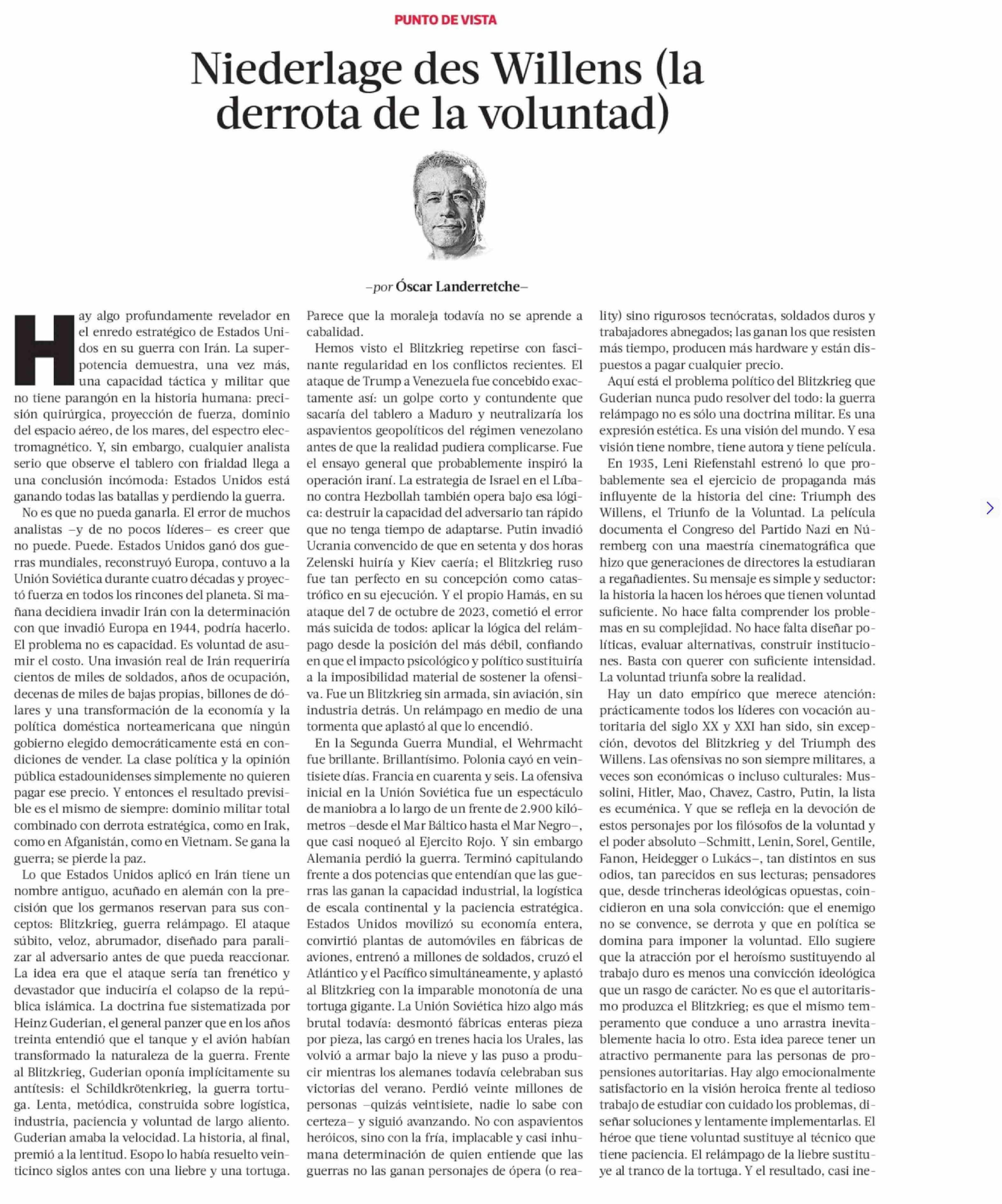 Título: Columnas de Opinión: Niederlage des Willens (la derrota de la voluntad)