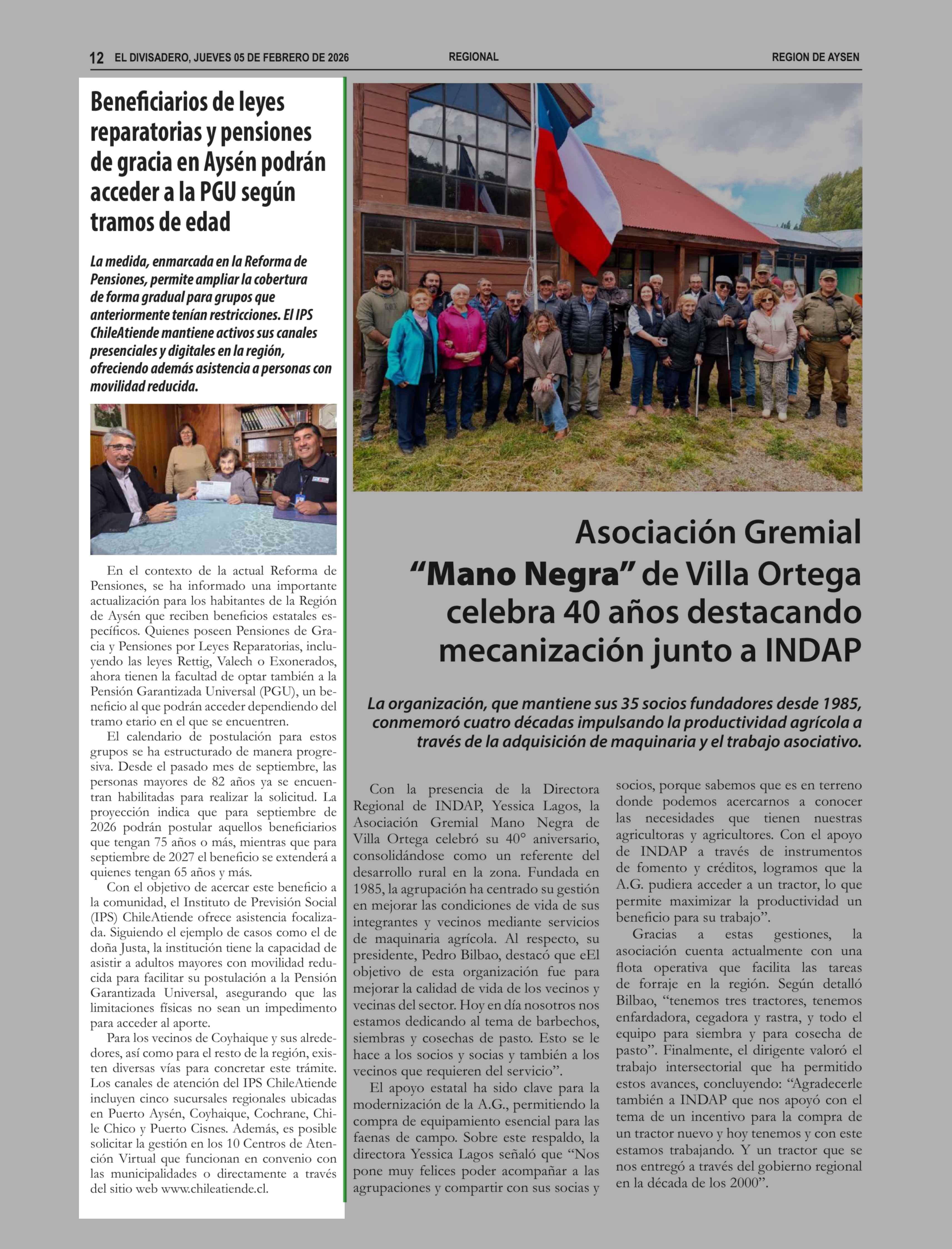 Beneficiarios de leyes reparatorias y pensiones de gracia en Aysén podrán acceder a la PGU según tramos de edad 05-02-2026 El Divisadero |