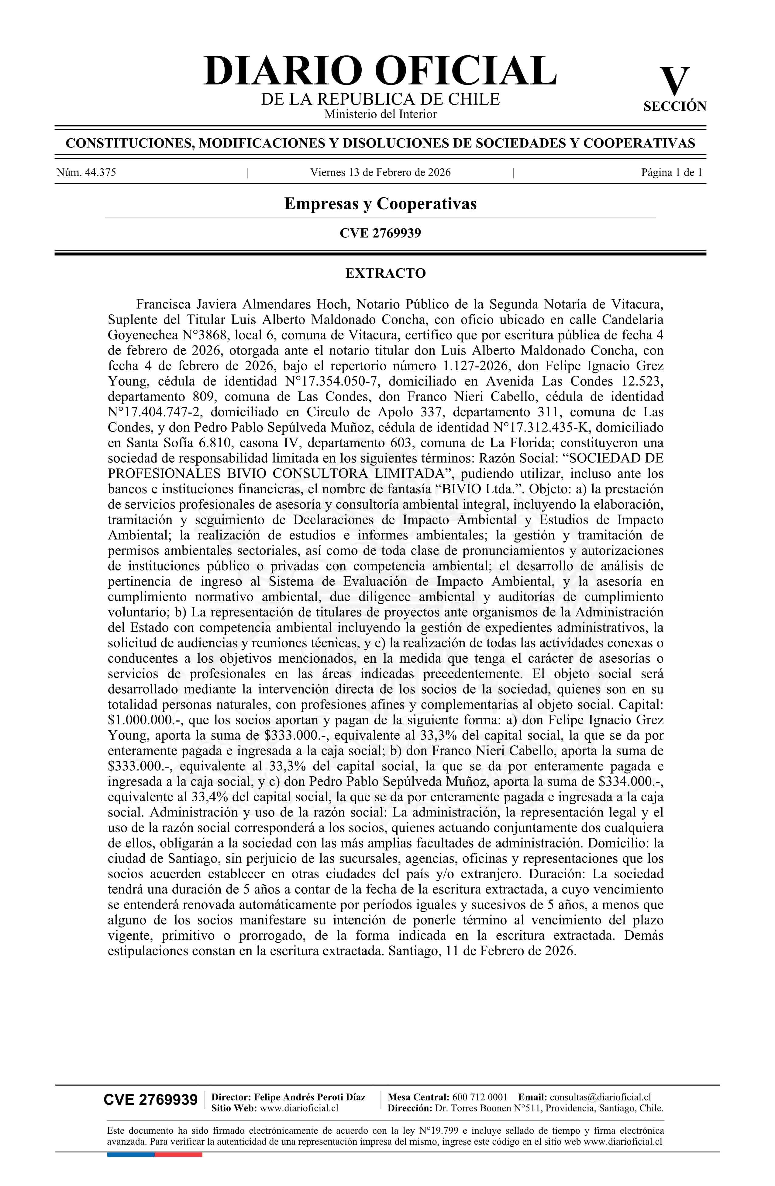 Título: Sociedad de Profesionales Bivio Consultora Limitada