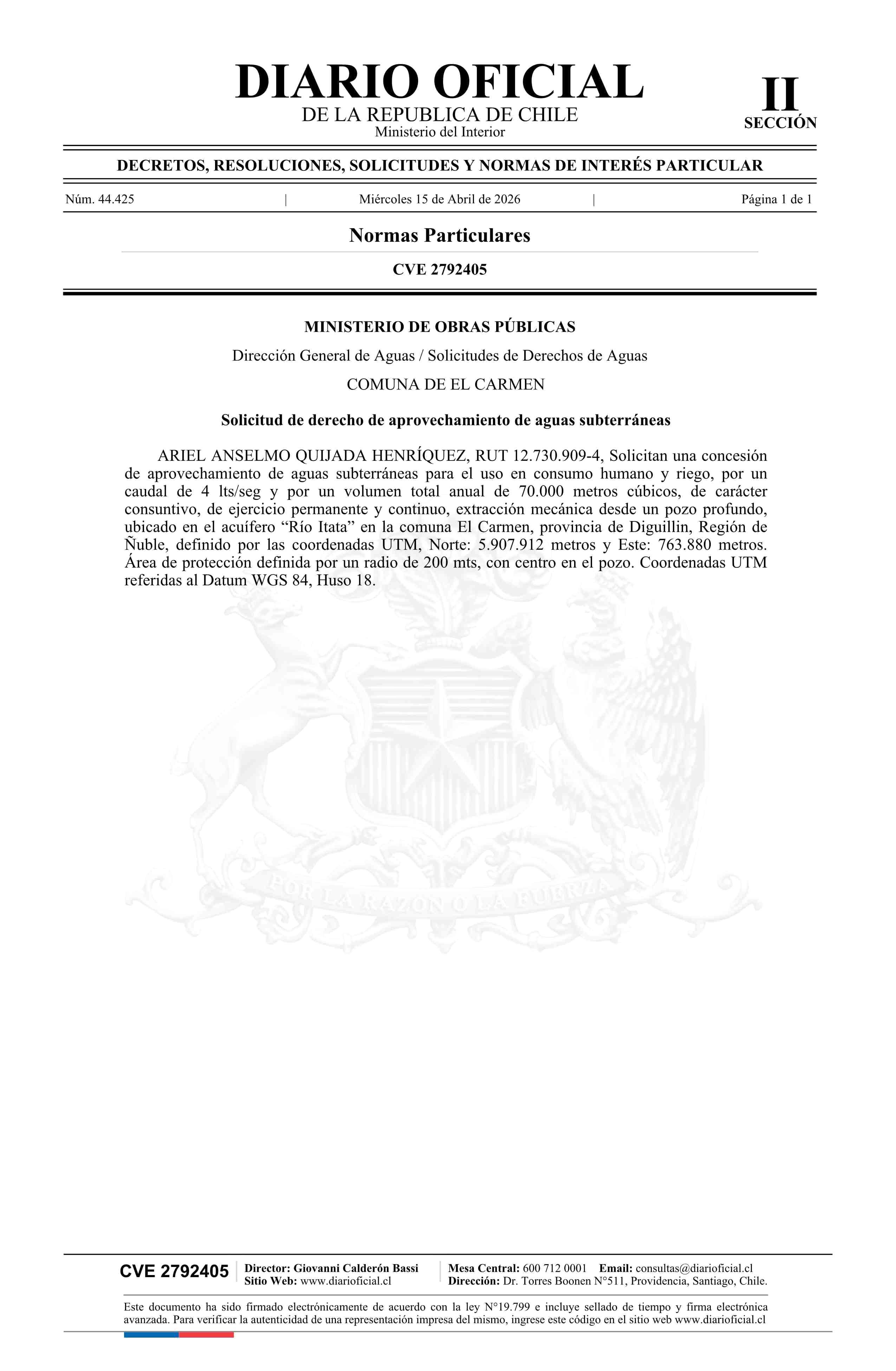 Solicitud Quijada Henríquez Ariel Anselmo 15-04-2026 Diario Oficial Edición Electrónica |